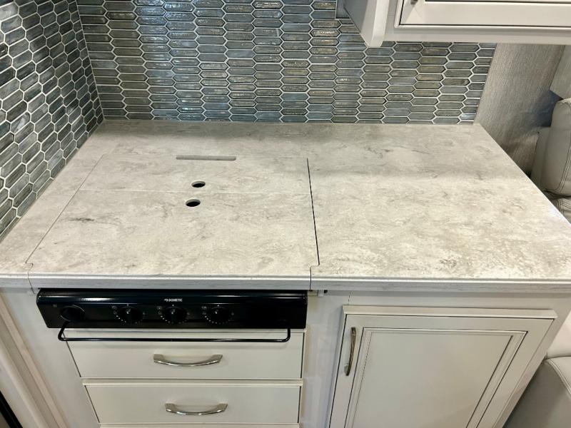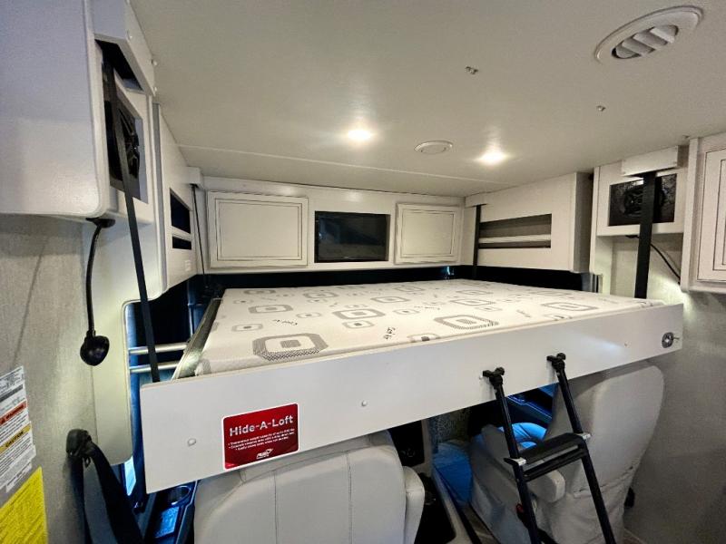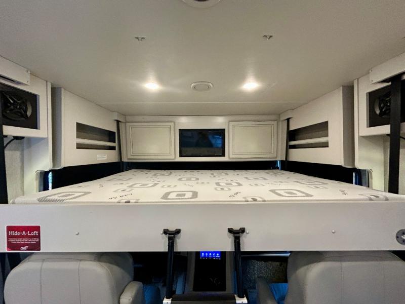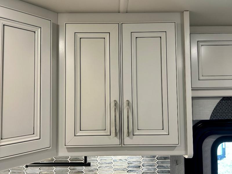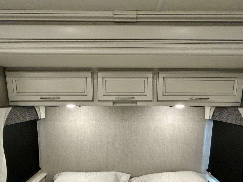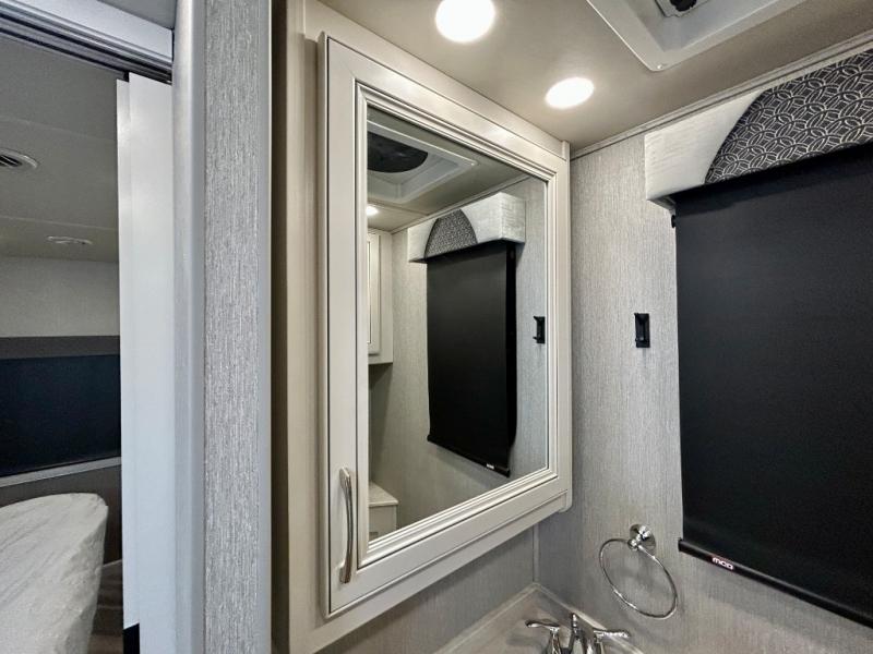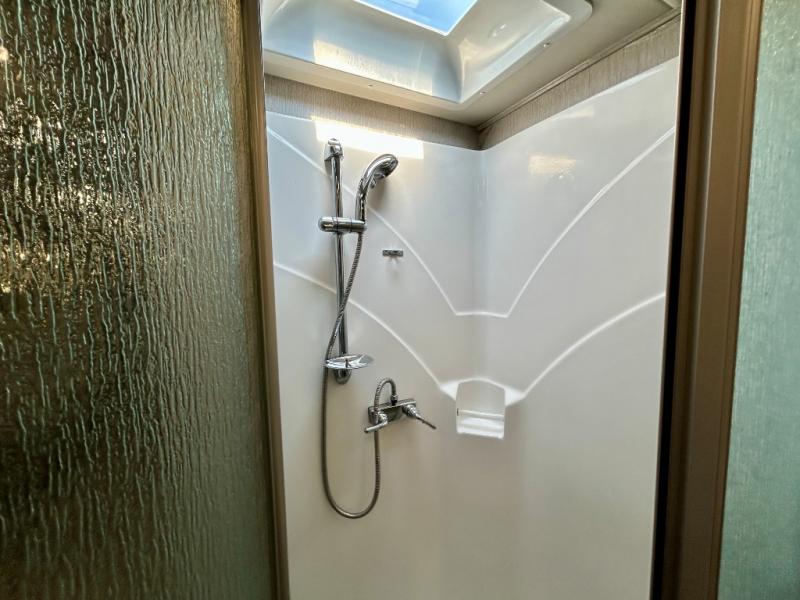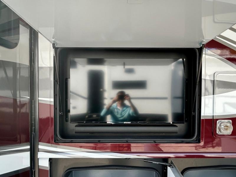Looking for a spacious RV with a mid-coach entry, four distinct areas, and offers a way to work while on the road plus be able to host a dinner party for friends and family? This Bounder gives you all that and so much more like a stainless steel farmhouse sink, a solid surface top in the galley, and full extension drawer guides with latches, plus full amenities to make any meals including a convection microwave and residential refrigerator. The split bathroom is super convenient when trying to get ready in the mornings. One person can be washing their hands in the private sink and toilet room while another person can be using the second sink beside the neo-angled shower. Yet you can also close two sliding doors to make this one big bathroom for yourself. And the multi-purpose Adapt-table dinette allows you to work or eat breakfast for two, and you can easily swing the table out vertically to host four. The rear bedroom offers a slide out king bed, plus plenty of storage and an LED TV to watch before falling asleep. If you like to host overnight guests, the jack knife sofa is available.