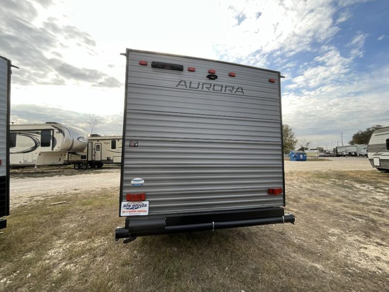 Comfortability, usability, and quality is what you will find in each one of these Forest River Aurora travel trailers or toy haulers! They are designed with a superior build and packed full with industry leading, functional, and distinctive standard features. SolidStep entrance steps and an XL swing arm grab handle help you to safely enter and exit the unit. The diamond plate rock guard will protect your unit from road debris and the nitrogen filled radial tires, which keep their pressure longer, offering better fuel economy. You will also find upgraded JBL Elite exterior speakers outside, a Carefree awning with multicolor lights and remote, plus flush mount baggage doors for easy packing. The interiors are beautifully designed with stainless steel appliances, and linoleum flooring throughout which will be easy to clean. Come find your favorite model today!