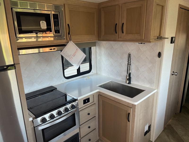 Comfortability, usability, and quality is what you will find in each one of these Forest River Aurora Sky Series travel trailers! They are designed with a superior build and packed full with industry leading, functional, and distinctive standard features. SolidStep entrance steps and an XL swing arm grab handle help you to safely enter and exit the unit. The diamond plate rock guard will protect your unit from road debris and the nitrogen filled radial tires, which keep their pressure longer, offer better fuel economy. You will also find upgraded JBL Elite exterior speakers outside, a Carefree awning with multicolor lights and remote, plus flush mount baggage doors for easy packing. The interiors are beautifully designed with a deep undermount farm style sink, stainless steel appliances, and linoleum flooring throughout which will be easy to clean. Come find your favorite model today! DLR #886B