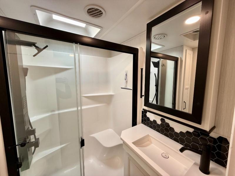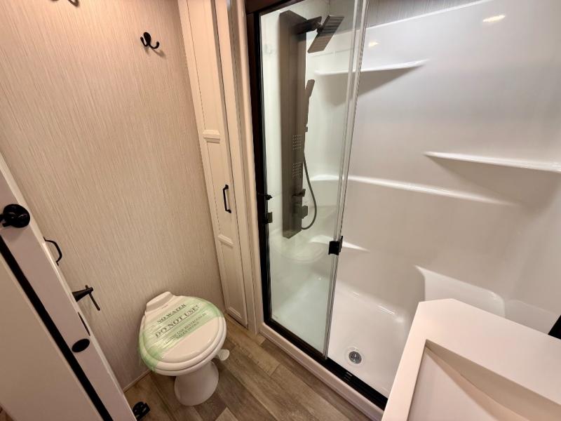 You will have peace of mind camping with any one of these Forest River Cedar Creek fifth wheels or fifth wheel toy haulers! Their aluminum superstructure, high gloss gelcoat exterior, and Dexter heavy duty axles with E-Z lube hubs will outlast all of your adventures. The Silaprene bonded sidewalls resist UV, heat, cold, oils, and highway chemicals with a bond that grows stronger with age while resisting delamination too. With the Vegatouch panel and Firefly dimmer switches, you can have total control of your unit in the palm of your hand. The exterior full docking station has multi-function tank levers, black tank flush, 12V battery disconnect, and an outside shower to keep the dirt where it belongs. The congoleum flooring throughout not only makes you feel right at home, but is also easy to clean. Come find the right model for you today!