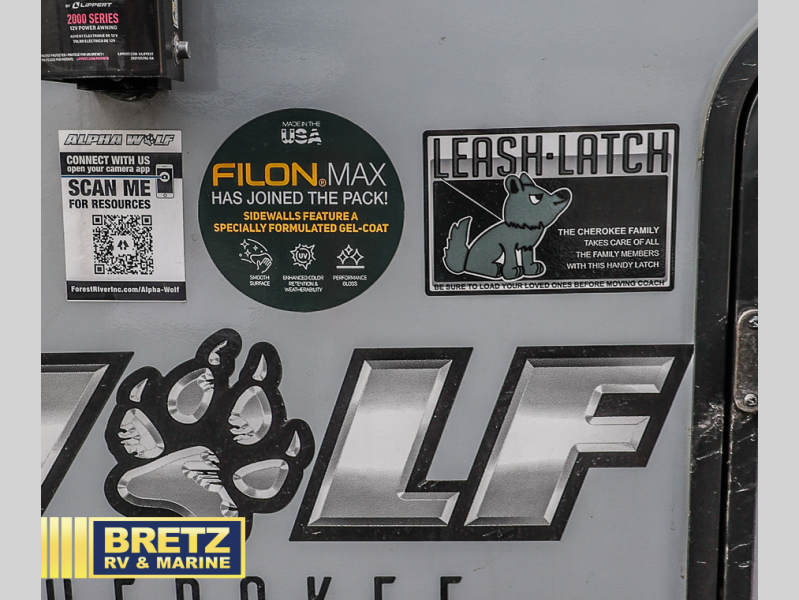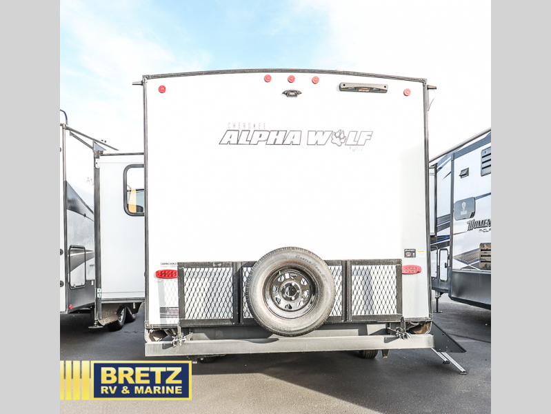 With any Cherokee Alpha Wolf travel trailer by Forest River you'll enjoy outstanding amenities, quality construction, and an affordable price. Each model features a "ToughBend" rigid skirt metal design, 5/8" tongue and groove plywood floor decking, and a "SuperTruss" roof structure that will hold up through years of camping memories. There is EZ-Clean deluxe kitchen backsplash indoors, along with an LED interior lighting package, a deluxe furniture pack, and many more comforts. These travel trailers include a utility center convenience light so you can easily check tank levels, and the outdoor TV prep means you can bring along your television for the big game. The Limited Package, Weather Guard Package, and Convenience Package include additional features found on select models, and there available options that can be added to further customize your Cherokee Alpha Wolf!