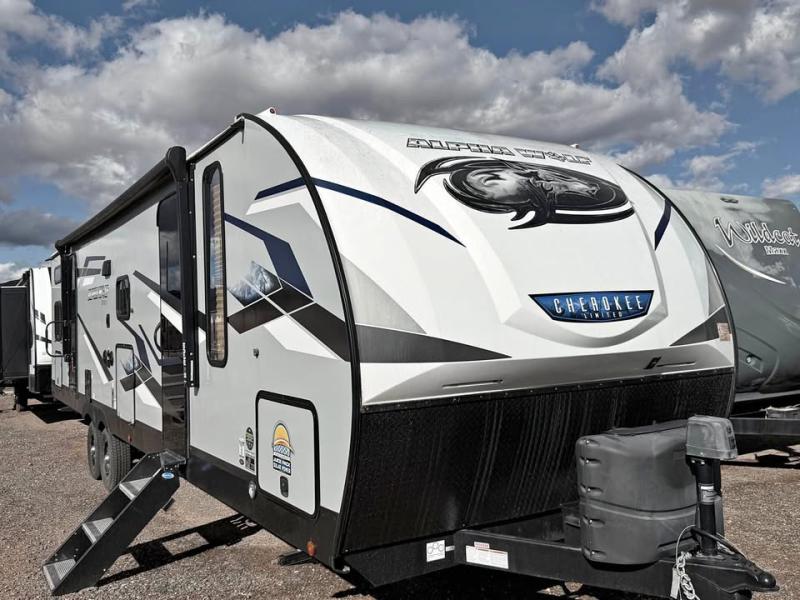 With any Cherokee Alpha Wolf travel trailer by Forest River you'll enjoy outstanding amenities, quality construction, and an affordable price. Each model features a "ToughBend" rigid skirt metal design, 5/8" tongue and groove plywood floor decking, and a "SuperTruss" roof structure that will hold up through years of camping memories. There is EZ-Clean deluxe kitchen backsplash indoors, along with an LED interior lighting package, a deluxe furniture pack, and many more comforts. These travel trailers include a utility center convenience light so you can easily check tank levels, and the outdoor TV prep means you can bring along your television for the big game. The Limited Package, Weather Guard Package, and Convenience Package include additional features found on select models, and there available options that can be added to further customize your Cherokee Alpha Wolf!