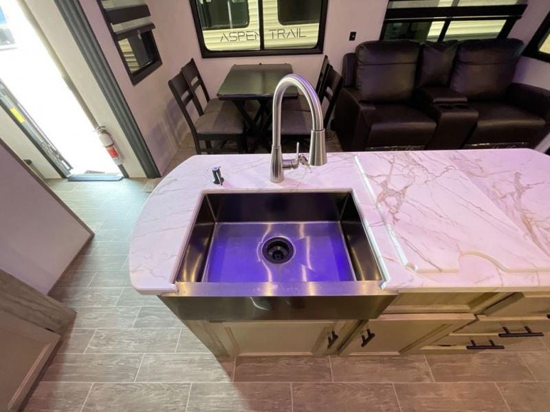 You'll have the very best time tackling outdoor adventures with the Forest River Cherokee Arctic Wolf fifth wheel! Each model has been constructed with a “ToughBend” rigid skirt metal design, Leash Latch pet safety technology, an outside shower with hot/cold water, a 1x engineered wood “SuperTruss” roof structure with 3/8" decking, and aluminum rims. The interior offers you a dual-zone Bluetooth stereo optimized for USB flash drives, iPods, and other MP3 players, and you'll find motion-sensor lighting to help you see when it's dark. There is an interior-mounted “My RV” control pad diagnostic and auto level control pad as well as a smart monitor panel with smart phone Bluetooth connectivity. These models have been prepped for a second air conditioner, and they have also been prepped for a bumper-mount swing-arm grill.