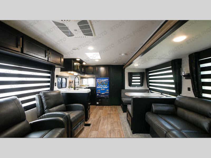 With any Cherokee Black Label by Forest River, there is Power Gear frame technology and space saver rail design, a seamless roofing membrane with heat reflectivity, a supersize, central air conditioning unit with quick cool air dump feature, and an armored underbelly tank enclosure. Some of the additional features provided by for Black Label models include upgraded solid surface countertops, a pillowtop mattress, and designer fabric, plus a battery disconnect, a battery minder, and a power tongue jack. Choose comfort and style, take home a Black Label travel trailer or toy hauler today!
