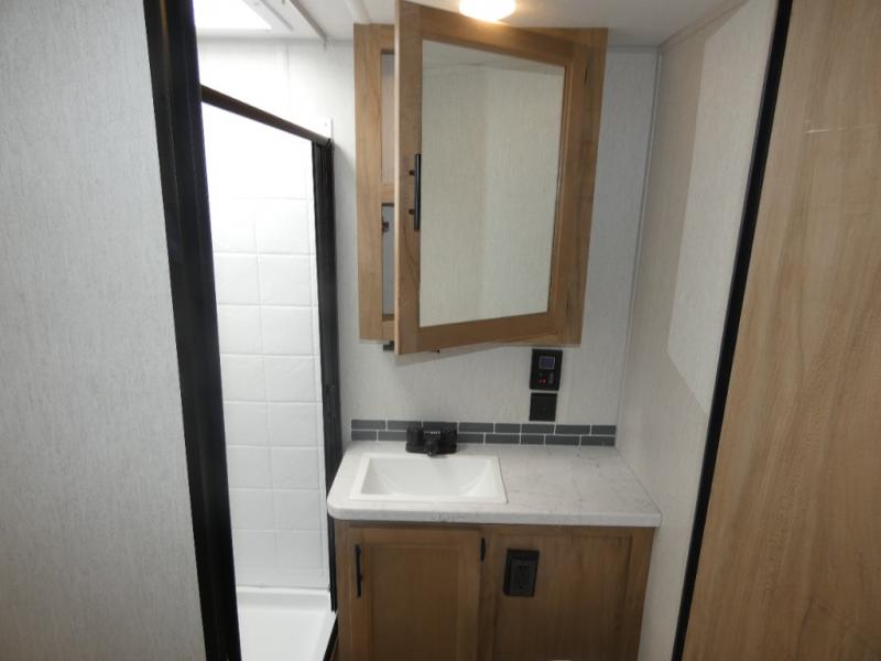You will undoubtedly love this Cherokee Grey Wolf toy hauler! Because of its ability to have up to 15' 2" of cargo space, you can easily load up the ramp door and head out to your outdoor toy land, and you can bring much more than just your toys since this trailer also comes with exterior storage, a bedside wardrobe, overhead cabinets, an 11-cubic foot refrigerator, and a kitchen pantry. The full bathroom is another feature that is going to allow you to experience a true getaway since you won't need to find public facilities to use while you're gone, and the USB charging stations will allow you to charge your phone inside while you're outside playing.