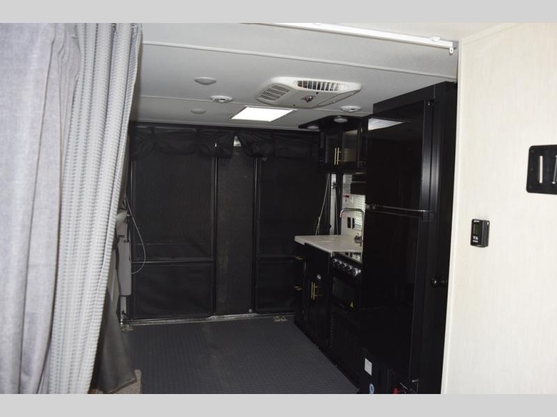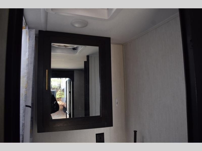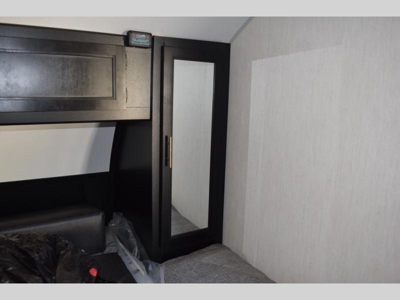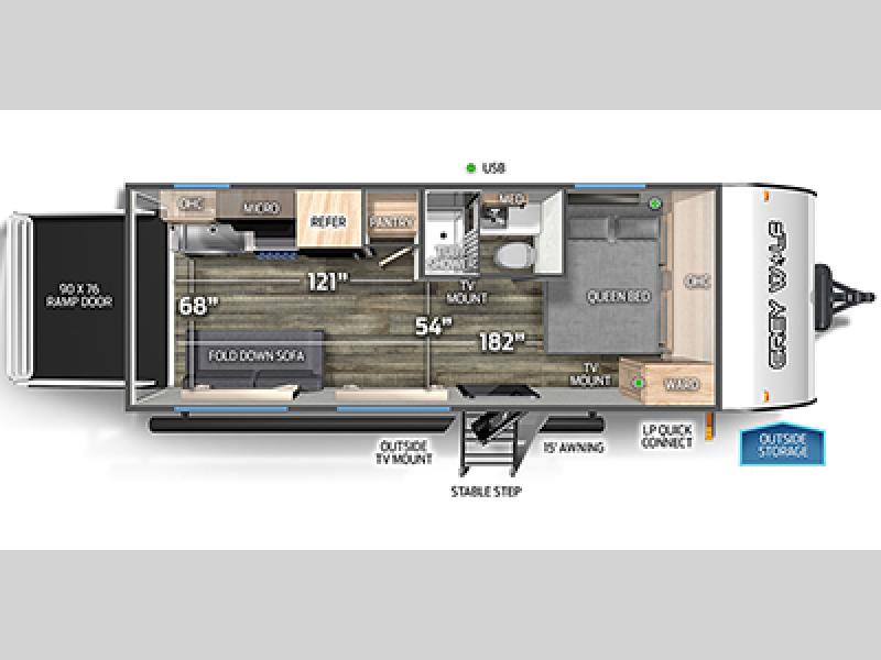 You will undoubtedly love this Cherokee Grey Wolf toy hauler! Because of its ability to have up to 15' 2" of cargo space, you can easily load up the ramp door and head out to your outdoor toy land, and you can bring much more than just your toys since this trailer also comes with exterior storage, a bedside wardrobe, overhead cabinets, an 11-cubic foot refrigerator, and a kitchen pantry. The full bathroom is another feature that is going to allow you to experience a true getaway since you won't need to find public facilities to use while you're gone, and the USB charging stations will allow you to charge your phone inside while you're outside playing.