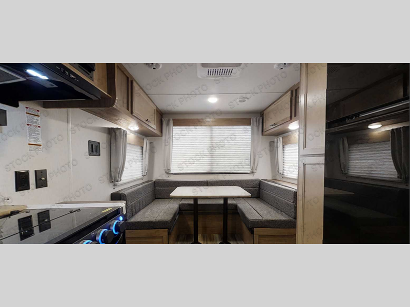 You and your favorite person will love this Cherokee Grey Wolf travel trailer for any weekend excursions away from home. The large U-shaped dinette in the rear of the unit makes it easy to invite fellow campers in for an evening snack and a card game or two. It can also easily accommodate extra overnight guests as the dinette folds down to create additional sleeping space for two. The queen bed up front will have you feeling right at home, and the full bath which is right across from the entry door is easily accessible from outside. There are plenty of storage options with the overhead cabinets, the pantry, and the wardrobes inside, plus there is also outside storage!