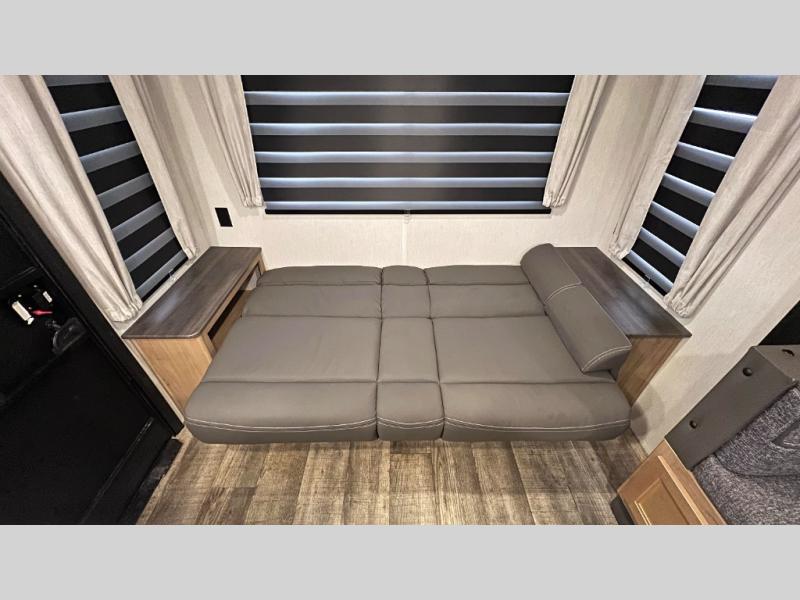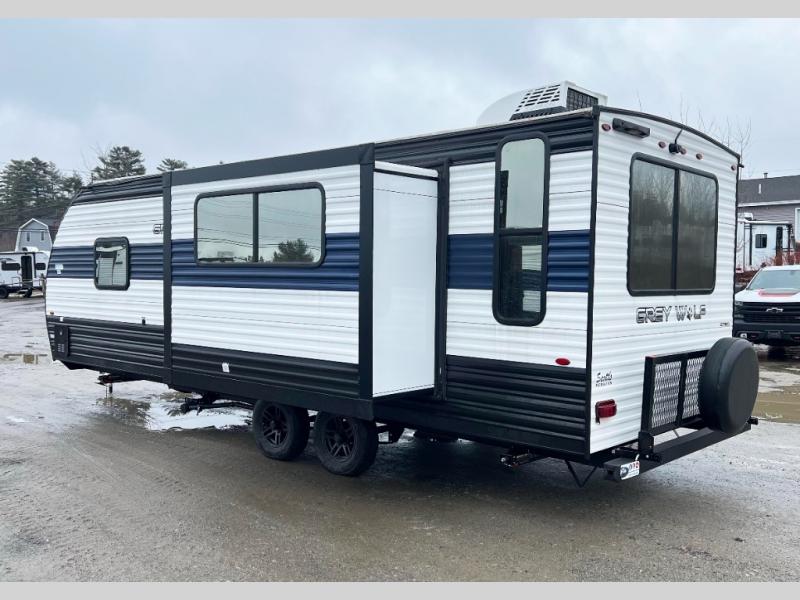 Whether it's a journey that will take you to new locations or a tried-and-true getaway to that favorite and memorable destination, the Forest River Cherokee Grey Wolf travel trailers and toy haulers are going to make the trip worth it every single time! You can travel in confidence with the premium wheel package, seamless roofing membrane with heat reflectivity, Power Gear frame technology with space-saver rail design, and Cherokee back-up camera system. The Cherokee Grey Wolf's interior is highly attractive with its stainless steel kitchen suite package, premium bedding ensemble and comforter, and 8" ceiling-mounted subwoofer with accent lighting. You will also find a black waste tank flush-out kit, an outside shower with hot and cold water, an armored underbelly tank enclosure, a power tongue jack, and an RV grill quick connect.