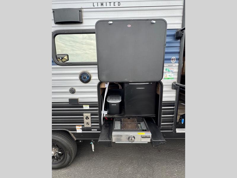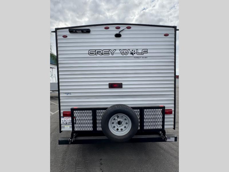 Whether it's a journey that will take you to new locations or a tried-and-true getaway to that favorite and memorable destination, the Forest River Cherokee Grey Wolf travel trailers and toy haulers are going to make the trip worth it every single time! You can travel in confidence with the premium wheel package, seamless roofing membrane with heat reflectivity, Power Gear frame technology with space-saver rail design, and Cherokee back-up camera system. The Cherokee Grey Wolf's interior is highly attractive with its stainless steel kitchen suite package, premium bedding ensemble and comforter, and 8" ceiling-mounted subwoofer with accent lighting. You will also find a black waste tank flush-out kit, an outside shower with hot and cold water, an armored underbelly tank enclosure, a power tongue jack, and an RV grill quick connect.