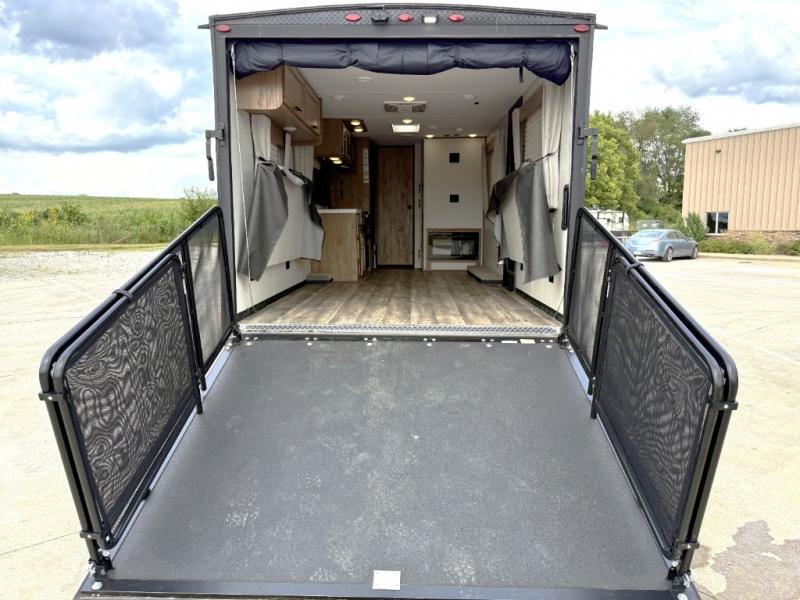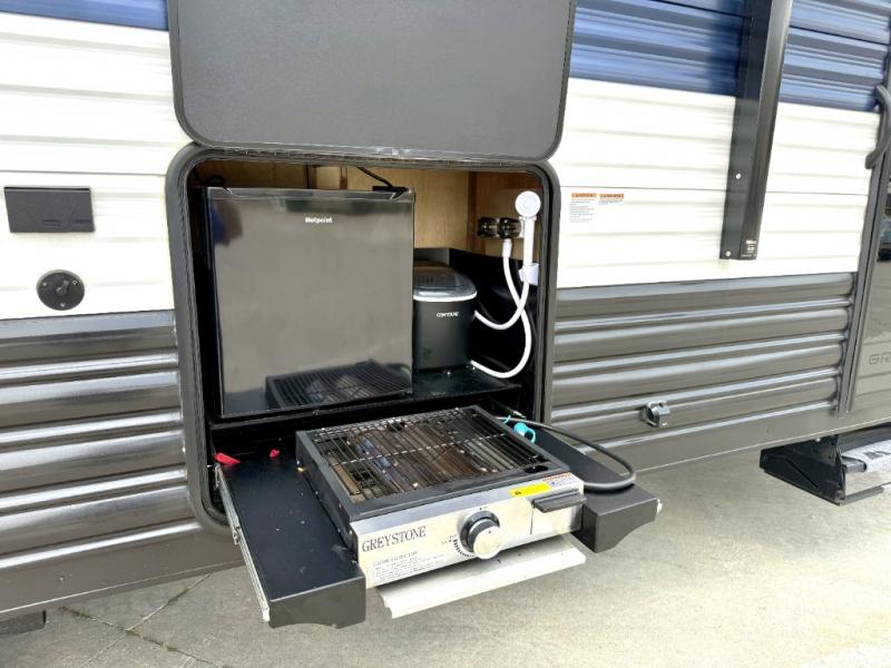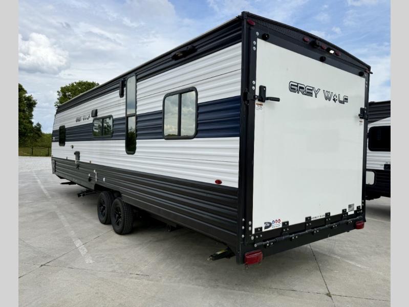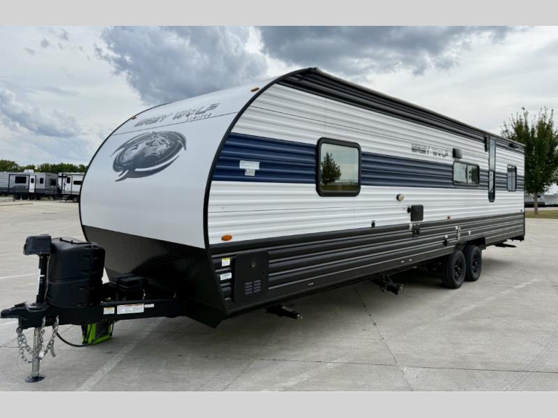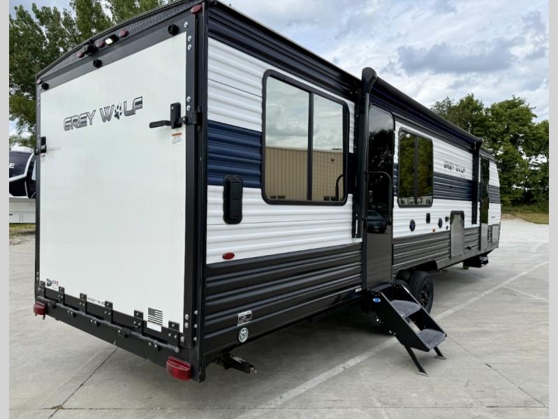 Whether it's a journey that will take you to new locations or a tried-and-true getaway to that favorite and memorable destination, the Forest River Cherokee Grey Wolf travel trailers and toy haulers are going to make the trip worth it every single time! You can travel in confidence with the premium wheel package, seamless roofing membrane with heat reflectivity, Power Gear frame technology with space-saver rail design, and Cherokee back-up camera system. The Cherokee Grey Wolf's interior is highly attractive with its stainless steel kitchen suite package, premium bedding ensemble and comforter, and 8" ceiling-mounted subwoofer with accent lighting. You will also find a black waste tank flush-out kit, an outside shower with hot and cold water, an armored underbelly tank enclosure, a power tongue jack, and an RV grill quick connect.