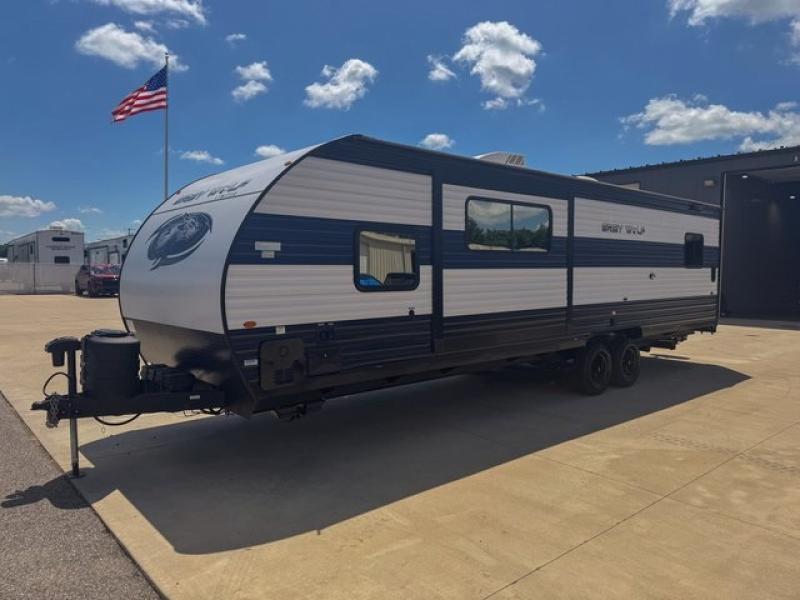 Whether it's a journey that will take you to new locations or a tried-and-true getaway to that favorite and memorable destination, the Forest River Cherokee Grey Wolf travel trailers and toy haulers are going to make the trip worth it every single time! You can travel in confidence with the premium wheel package, seamless roofing membrane with heat reflectivity, Power Gear frame technology with space-saver rail design, and Cherokee back-up camera system. The Cherokee Grey Wolf's interior is highly attractive with its stainless steel kitchen suite package, premium bedding ensemble and comforter, and 8" ceiling-mounted subwoofer with accent lighting. You will also find a black waste tank flush-out kit, an outside shower with hot and cold water, an armored underbelly tank enclosure, a power tongue jack, and an RV grill quick connect.