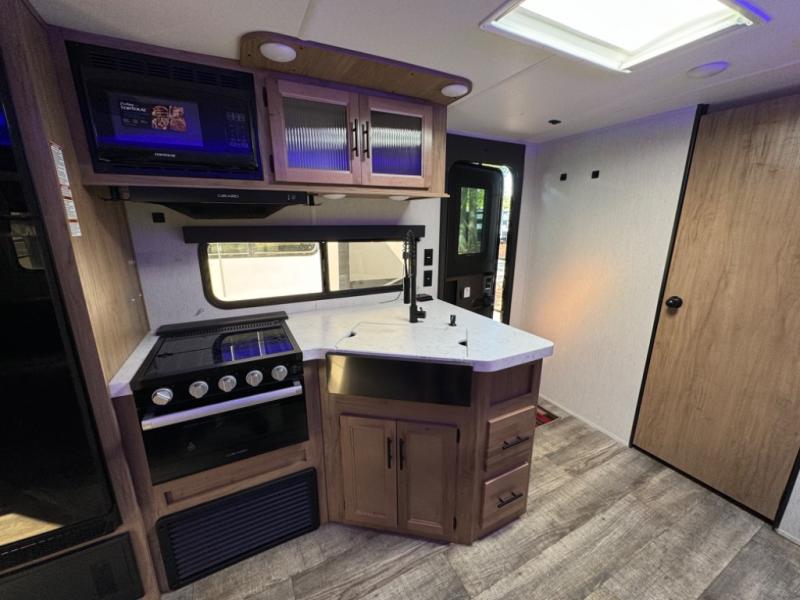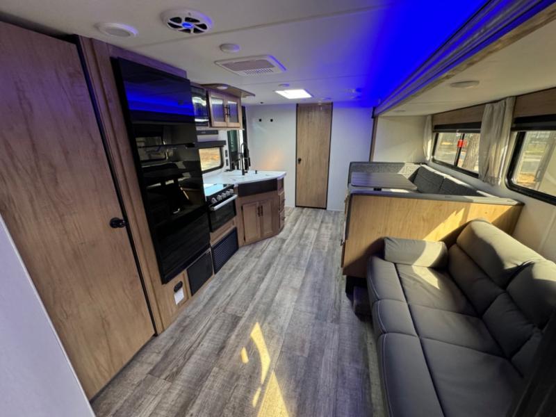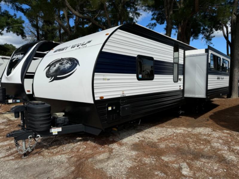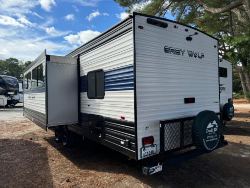 Whether it's a journey that will take you to new locations or a tried-and-true getaway to that favorite and memorable destination, the Forest River Cherokee Grey Wolf travel trailers and toy haulers are going to make the trip worth it every single time! You can travel in confidence with the premium wheel package, seamless roofing membrane with heat reflectivity, Power Gear frame technology with space-saver rail design, and Cherokee back-up camera system. The Cherokee Grey Wolf's interior is highly attractive with its stainless steel kitchen suite package, premium bedding ensemble and comforter, and 8" ceiling-mounted subwoofer with accent lighting. You will also find a black waste tank flush-out kit, an outside shower with hot and cold water, an armored underbelly tank enclosure, a power tongue jack, and an RV grill quick connect.