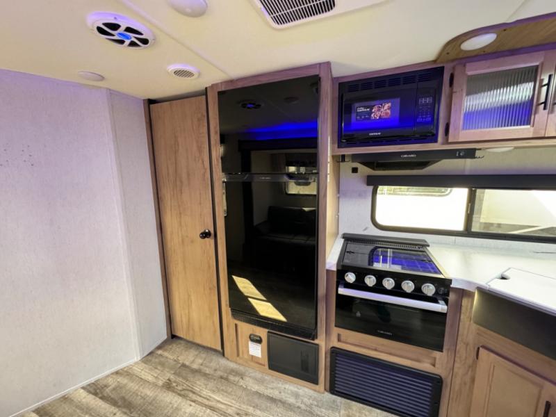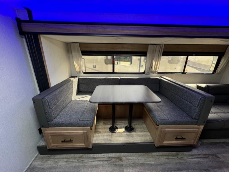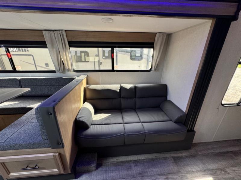 You will have such a great time making memories in this Cherokee Grey Wolf travel trailer! This amazing trailer not only has a master suite up front, but it also has another private bedroom in the back which means that both you and the rest of your fellow campers will sleep peacefully and privately. There is also a U-shaped dinette and sofa on the large slide in the main living area so that if you have anyone else traveling with you, they can also have a place to sleep. A full kitchen with a three-burner cooktop and oven will help you whip up a hearty meal to replenish your tired bodies, and a oversized pantry will hold onto your snacks and sweets for later.