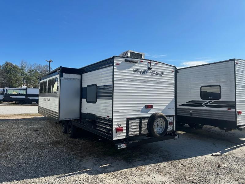 Whether it's a journey that will take you to new locations or a tried-and-true getaway to that favorite and memorable destination, the Forest River Cherokee Grey Wolf travel trailers and toy haulers are going to make the trip worth it every single time! You can travel in confidence with the premium wheel package, seamless roofing membrane with heat reflectivity, Power Gear frame technology with space-saver rail design, and Cherokee back-up camera system. The Cherokee Grey Wolf's interior is highly attractive with its stainless steel kitchen suite package, premium bedding ensemble and comforter, and 8" ceiling-mounted subwoofer with accent lighting. You will also find a black waste tank flush-out kit, an outside shower with hot and cold water, an armored underbelly tank enclosure, a power tongue jack, and an RV grill quick connect.