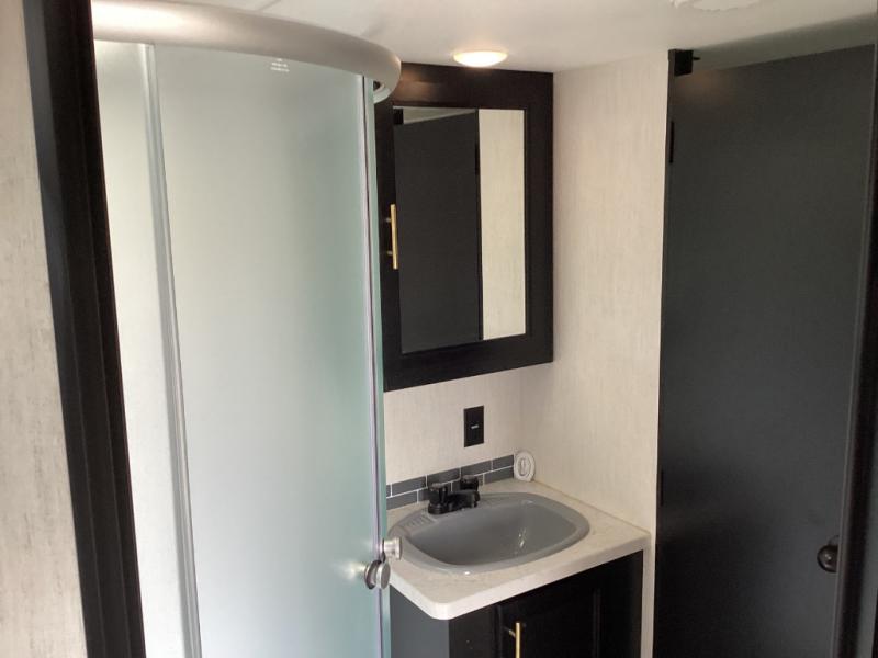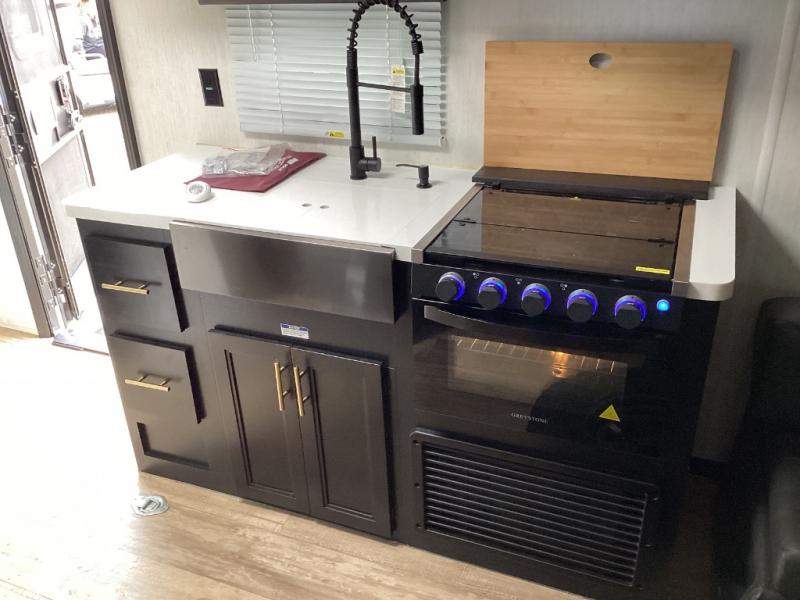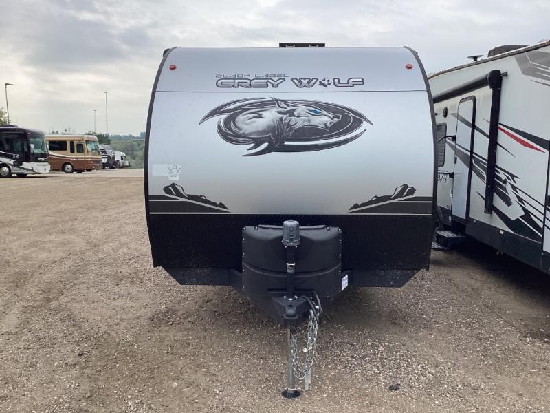 The Forest River Cherokee Grey Wolf Black Label travel trailers and toy haulers are attractive, enticing, and absolutely eye-catching! The Black Label comes with some features that are specifically unique to its name tag, like the hung fiberglass sided walls, solid surface countertops, designer cushion fabric, and a frameless window package. You can travel in confidence with the premium wheel package, seamless roofing membrane with heat reflectivity, Power Gear frame technology with space-saver rail design, and Cherokee back-up camera system. The Cherokee Grey Wolf's interior is highly attractive with its black stainless steel kitchen suite package, premium bedding ensemble and comforter, and 8" ceiling-mounted subwoofer with accent lighting. You will also find a black waste tank flush-out kit, an outside shower with hot and cold water, an armored underbelly tank enclosure, an on demand tankless water heater, and an RV grill quick connect.