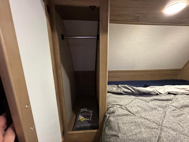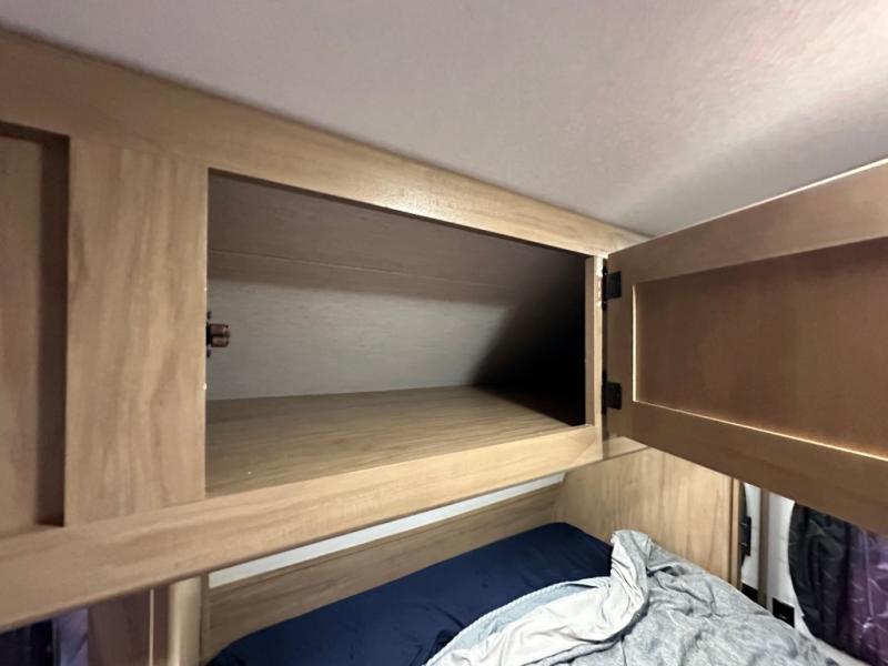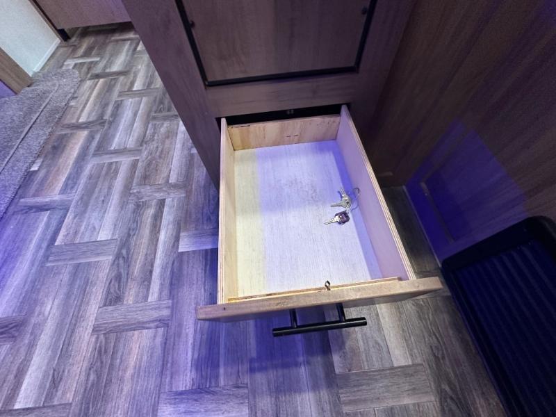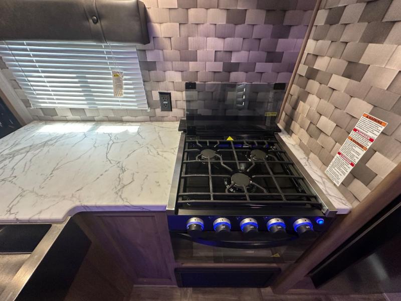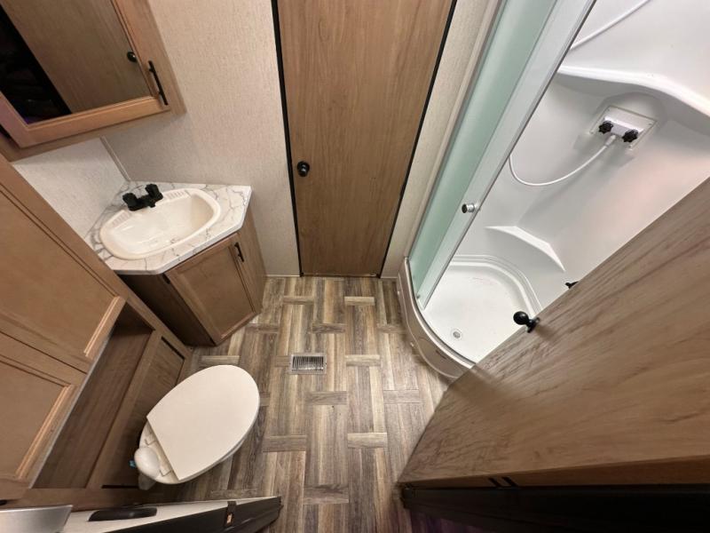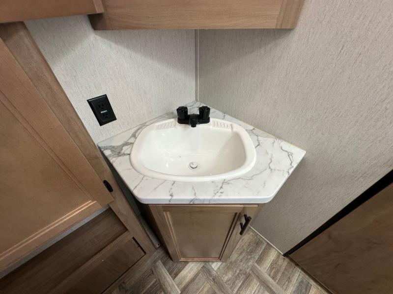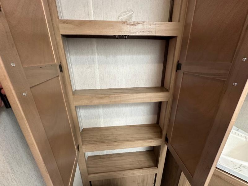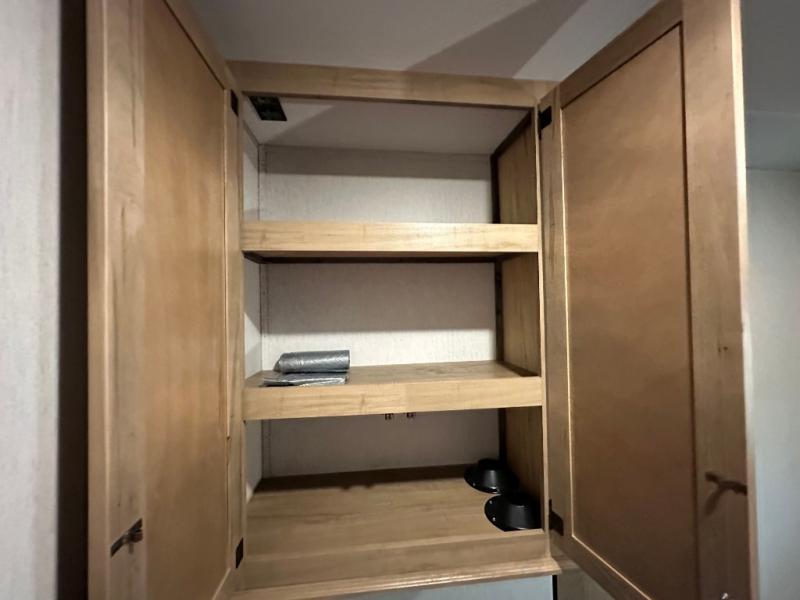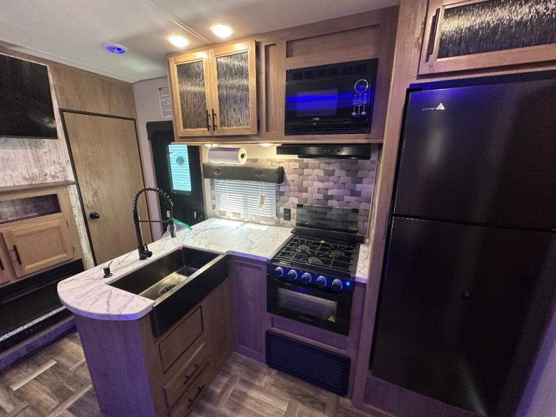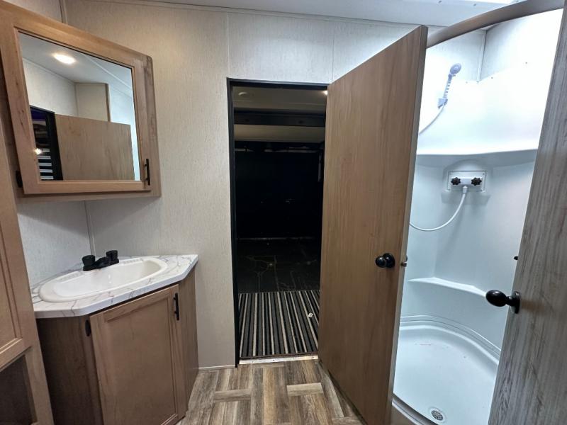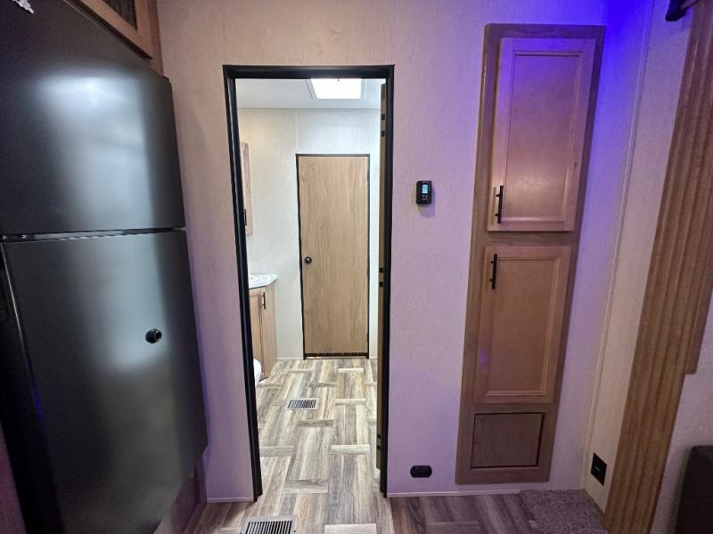 You are going to want this toy hauler for all of your adventures! It features a 12' garage area that has a folding dinette table with a Happijac bed lift system above it and one of the dual entry doors to the unit. The walk-through bathroom leads directly into the kitchen/living area. Here you will find a three burner cooktop to prepare your best meals, a U-shaped dinette to enjoy them at or you can switch it out for the optional party recliner sofa, and an entertainment center with a fireplace for a cozy evening indoors. Enjoy a good night's rest each night on the 67" x 74" Wolf Pack king bed with wardrobes on either side in the front private bedroom!