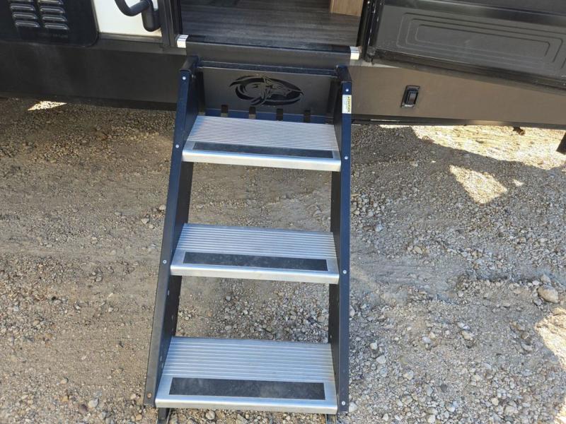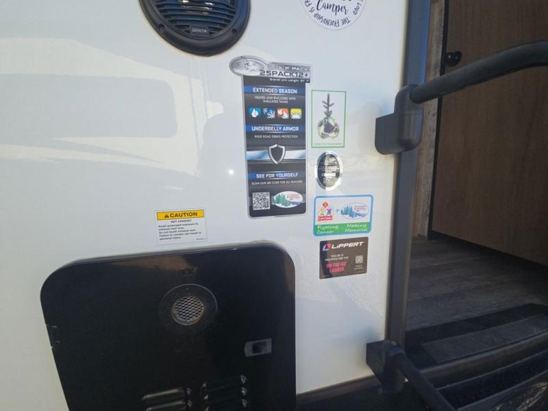 Run with the pack in any one of these Forest River Cherokee Wolf Pack toy haulers! They are affordable and versatile with a 102" widebody design to pack in all of the necessary features for a great adventure with your family and toys. The grey high gloss gel exterior will turn heads on the highway and the LED interior/exterior lights will make life easier. An outside shower with hot and cold water helps to keep the mud outside where it belongs. With an external 30 gallon fuel station, you won't have to worry about your toys being low on fuel. The Platinum package adds extra conveniences like a ramp door patio deck railing system, a Happijac bed lift system, and an industrial rubber garage floor on enclosed garage models. Come find the perfect model for you today!