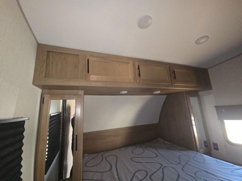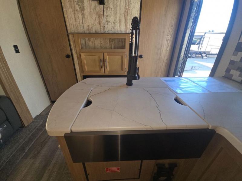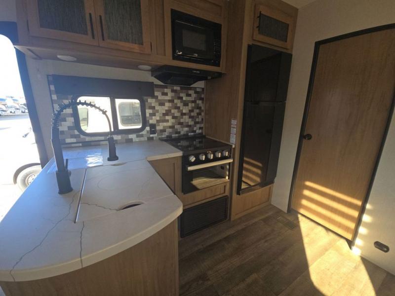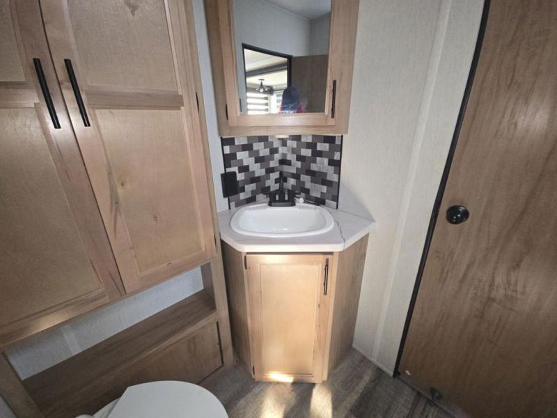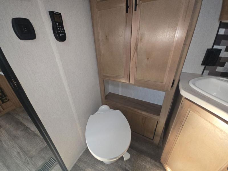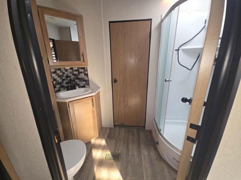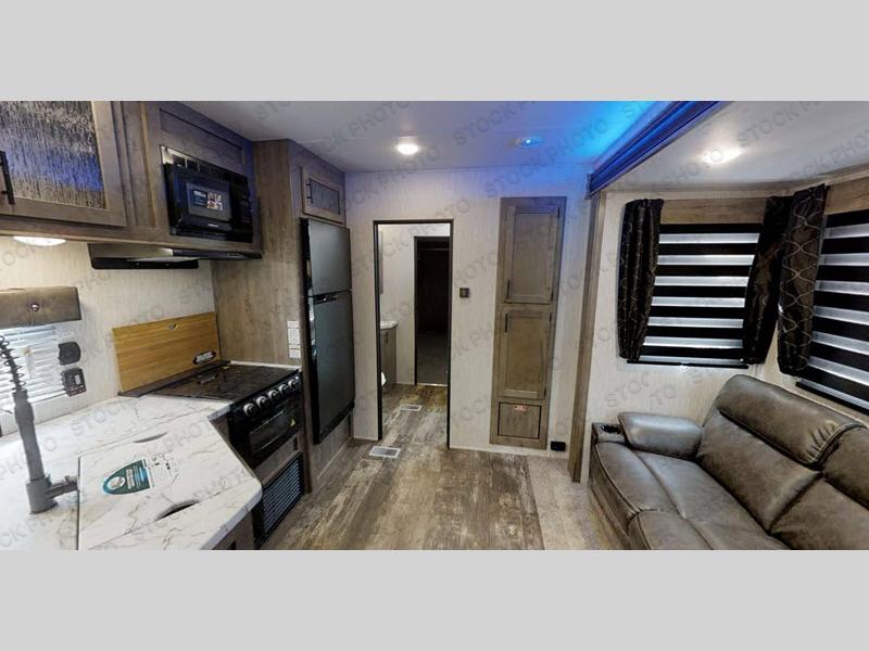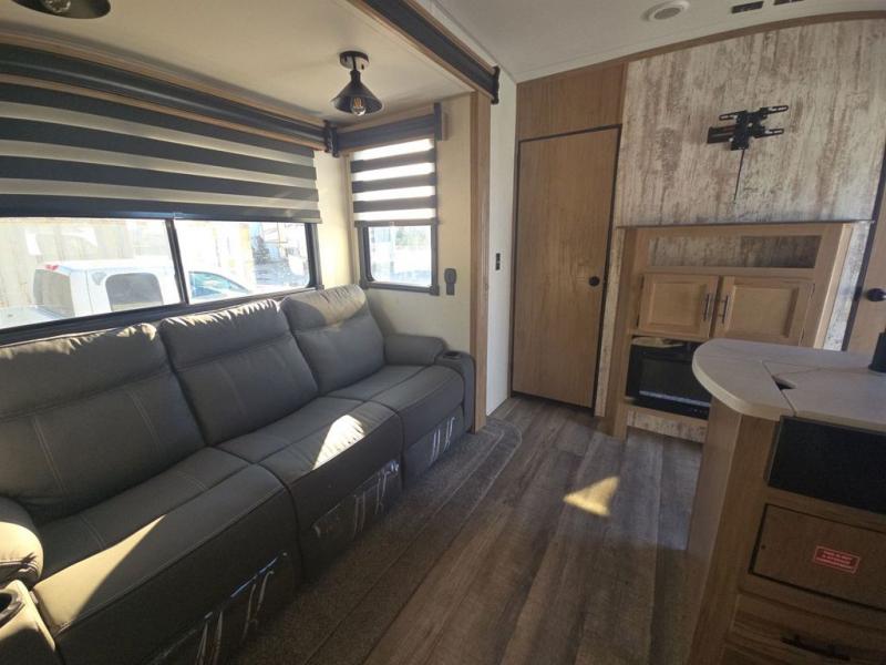 You are going to want this toy hauler for all of your adventures! It features a 12' garage area that has a folding dinette table with a Happijac bed lift system above it and one of the dual entry doors to the unit. The walk-through bathroom leads directly into the kitchen/living area. Here you will find a three burner cooktop to prepare your best meals, a U-shaped dinette to enjoy them at or you can switch it out for the optional party recliner sofa, and an entertainment center with a fireplace for a cozy evening indoors. Enjoy a good night's rest each night on the 67" x 74" Wolf Pack king bed with wardrobes on either side in the front private bedroom!