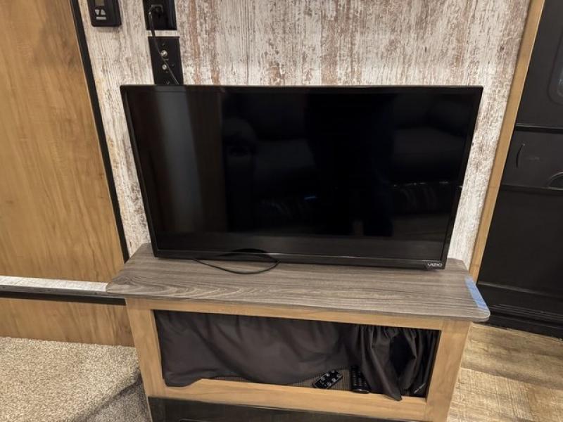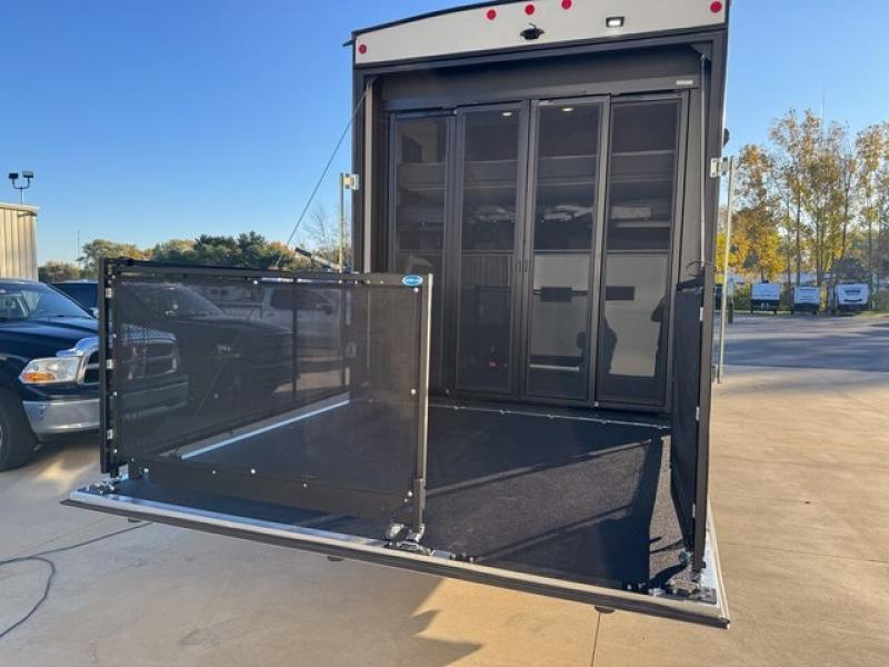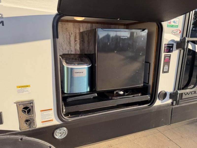 Run with the pack in any one of these Forest River Cherokee Wolf Pack toy haulers! They are affordable and versatile with a 102" widebody design to pack in all of the necessary features for a great adventure with your family and toys. The grey high gloss gel exterior will turn heads on the highway and the LED interior/exterior lights will make life easier. An outside shower with hot and cold water helps to keep the mud outside where it belongs. With an external 30 gallon fuel station, you won't have to worry about your toys being low on fuel. The Platinum package adds extra conveniences like a ramp door patio deck railing system, a Happijac bed lift system, and an industrial rubber garage floor on enclosed garage models. Come find the perfect model for you today!