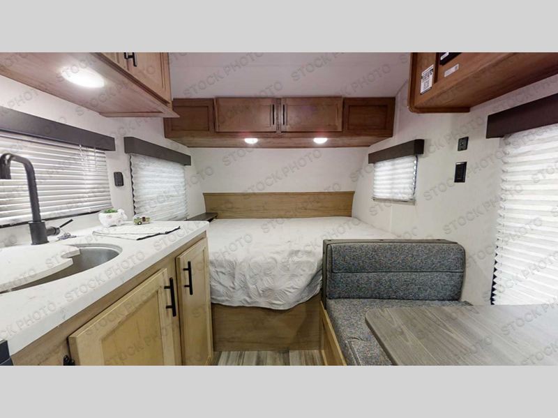 There are lots of features packed into this 19' travel trailer! The rear entry design creates a split bathroom for one person to use the private toilet while another freshens up in the private shower. You can prepare your best home cooked meals with the high output cooktop, the 11 cu. ft. Cannon high efficiency refrigerator, and a large sink to make clean up easier, plus you can comfortably enjoy your meals at the booth dinette with a TV mount location. The front queen bed provides a comfortable place to lay your head night. Store your outdoor gear in the outside storage area, rinse the mud off your feet with the outside shower, and watch the big game outdoors with the outside TV mount!