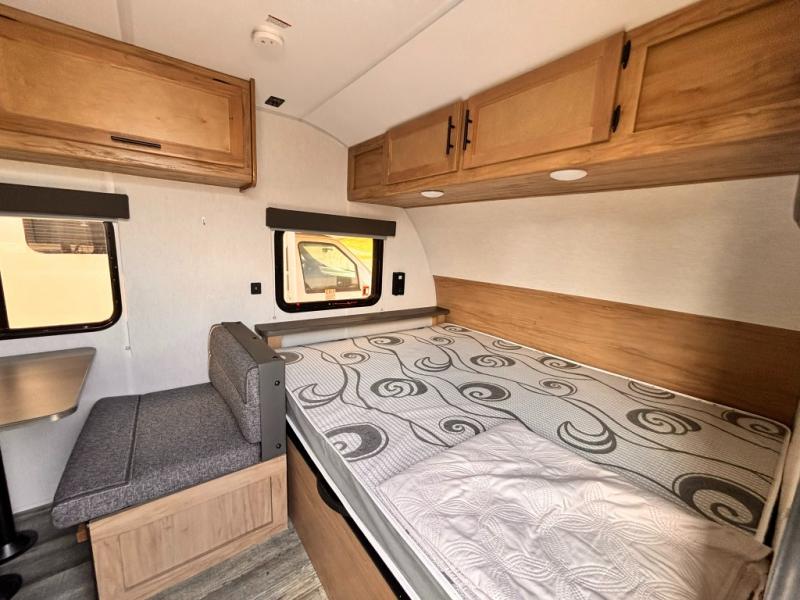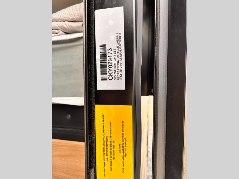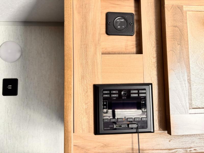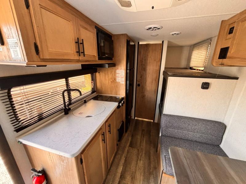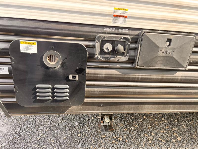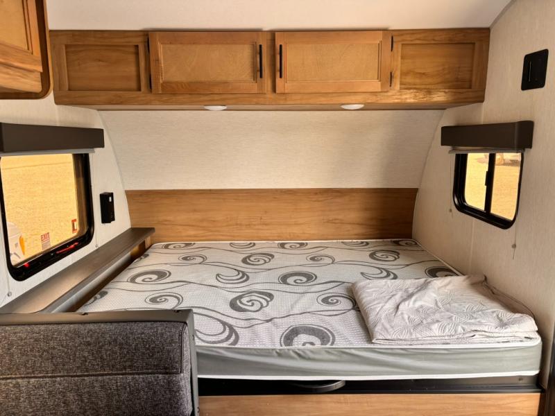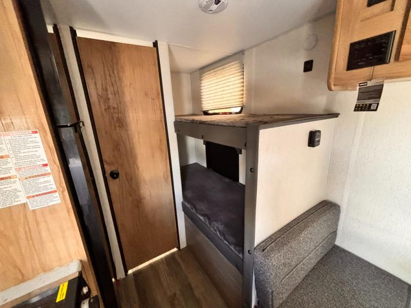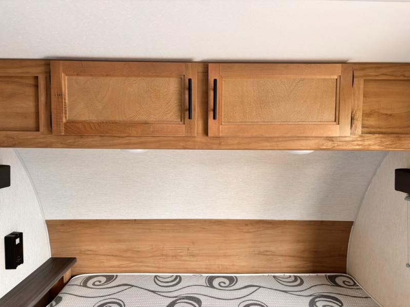 The whole family can sleep comfortably in this travel trailer! It has a set of bunk beds for the kids to sleep on with a TV mount location for extra entertainment, and you can sleep comfortably on the front queen bed with overhead cabinets and a shelf. There is even an exterior pack and play door that accesses the storage space under the bottom bunk. The chef will enjoy preparing their best home cooked meals either indoors with the high output cooktop or at the outside mini kitchen while staying protected by the 12' power awning, plus you have an outside TV mount location for added entertainment while you cook!