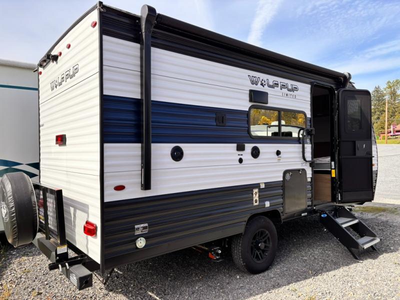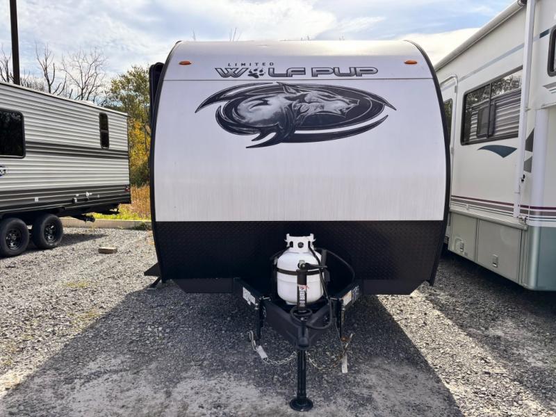 Each one of these Forest River Cherokee Wolf Pup travel trailers and toy haulers are lightweight and easy to tow! They are fully self contained with ample tank capacities, an abundance of storage space, and filled with at home amenities. The aerodynamic smooth radius front profile, the Power Gear frame technology, and the space saver rail design make them easier to maneuver. You will also appreciate the seamless roofing membrane with heat reflectivity to keep the sun from making your unit a hot box. The tongue and groove plywood flooring will hold up for years of fun and the USB charging stations help to keep your electronics at 100% while you're away. Come find the best model for you today!