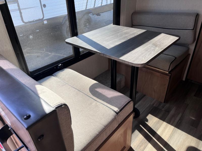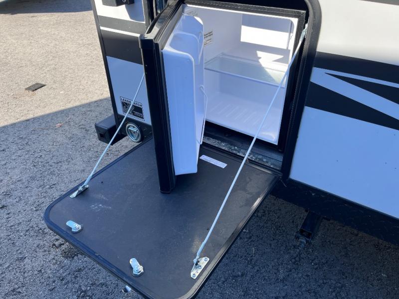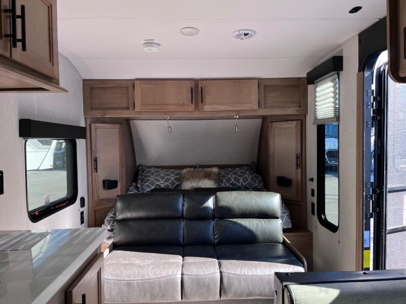 You will experience versatile living in this travel trailer with the Cherokee Sleep System! It lets you easily convert the front queen bed into a comfortable sofa to sit on during the day. Freshen up each morning in the full rear bathroom with the tub/shower and large sink with cabinet storage below it and mirror above it. Fill your bellies with the perishables stored in the 11 cu. ft. Cannon high efficiency refrigerator and cook them on the high output cooktop then enjoy them at the booth dinette. You could even prepare a meal while breathing in some fresh air at the outside mini kitchen while staying protected by the 12' power awning. Easily store all of your outdoor gear in the outside storage area too!