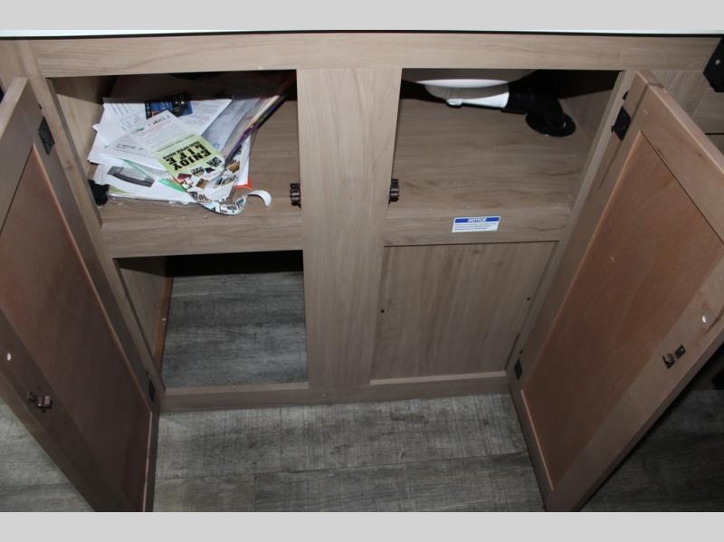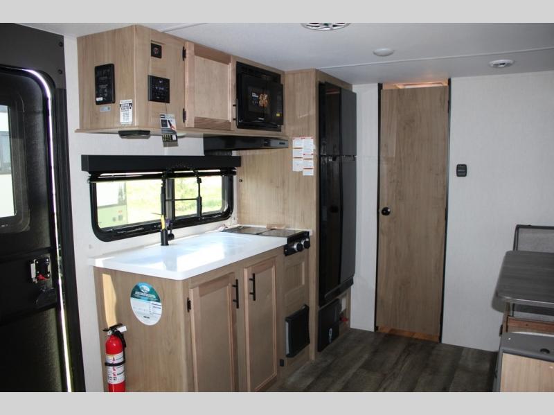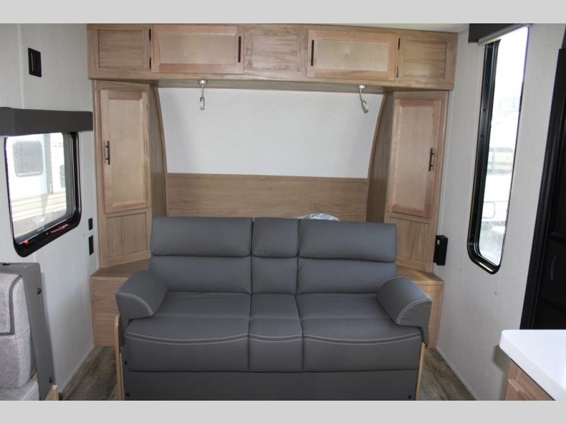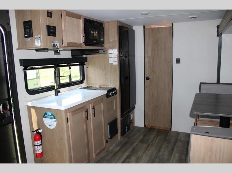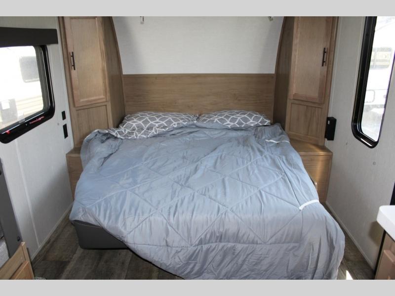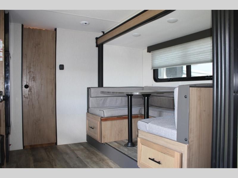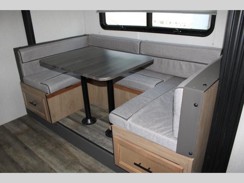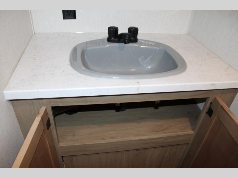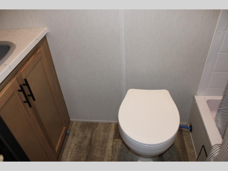 Every camping trip in this travel trailer is sure to be memorable. You will have a front queen bed to sleep on, while your guests take the U-shaped dinette when it's not being used to dine at. The kitchen provides a microwave oven, round single bowl sink, a range for cooking, and a refrigerator to keep all of your perishables fresh. The rear bath features a tub/shower, toilet, and vanity with sink, plus a medicine cabinet to keep this space tidy.