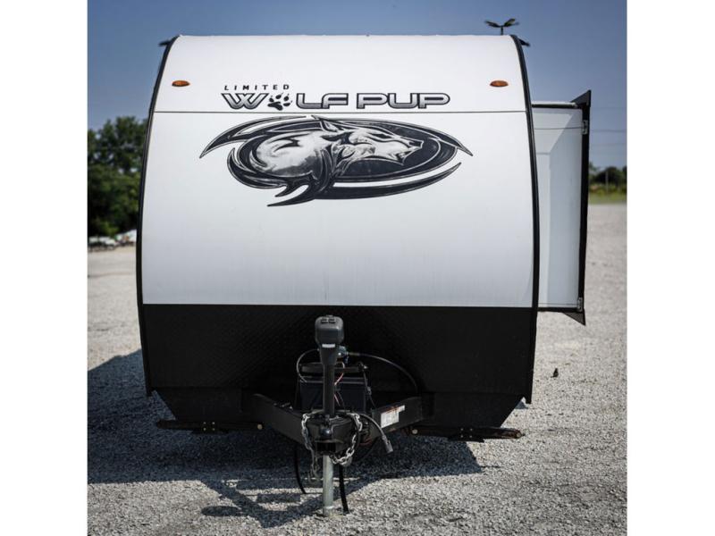 Each one of these Forest River Cherokee Wolf Pup travel trailers and toy haulers are lightweight and easy to tow! They are fully self contained with ample tank capacities, an abundance of storage space, and filled with at home amenities. The aerodynamic smooth radius front profile, the Power Gear frame technology, and the space saver rail design make them easier to maneuver. You will also appreciate the seamless roofing membrane with heat reflectivity to keep the sun from making your unit a hot box. The tongue and groove plywood flooring will hold up for years of fun and the USB charging stations help to keep your electronics at 100% while you're away. Come find the best model for you today!