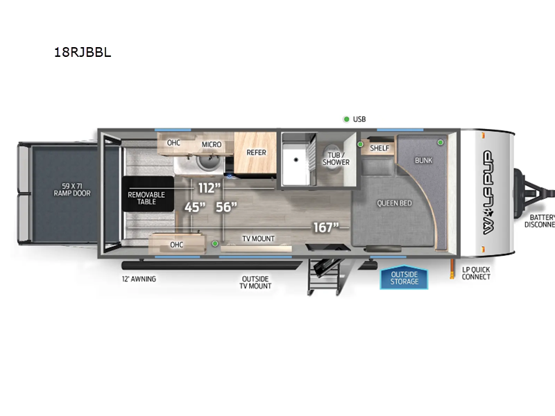 Forest River Cherokee Wolf Pup Black Label toy hauler 18RJBBL highlights: