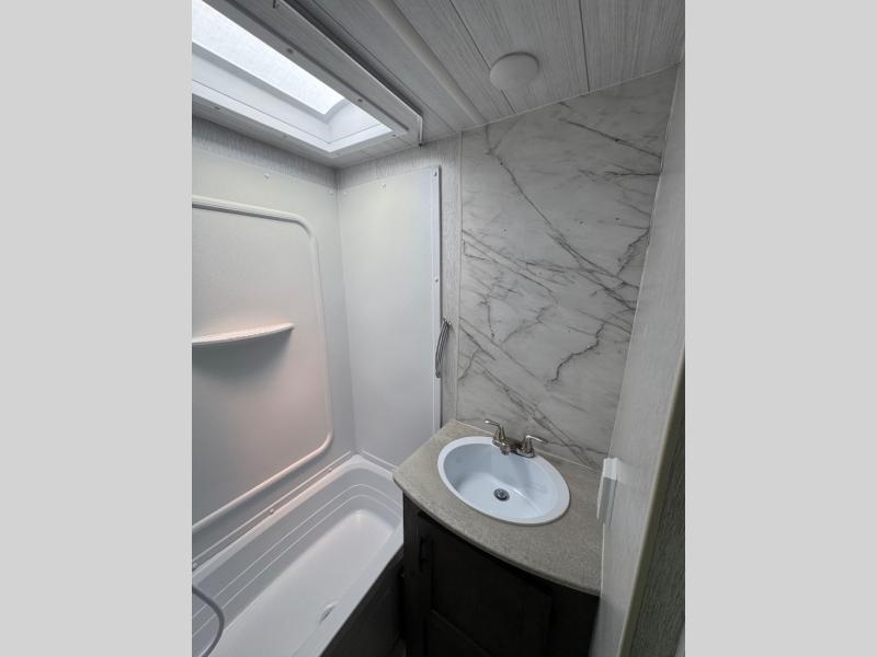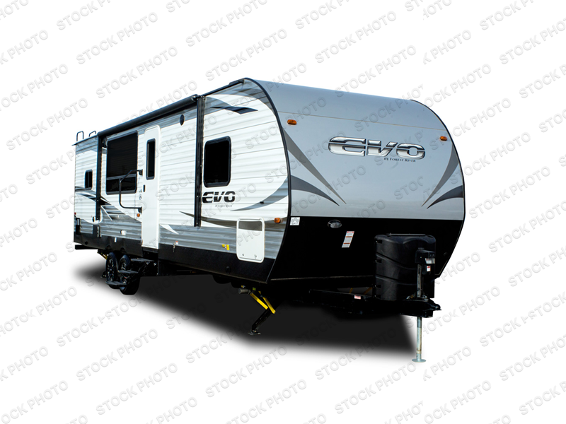 With any EVO travel trailer by Forest River you will find a durable RV made to last for years of memories. There is a heated and enclosed underbelly to extend your camping season and lower front gravel guard that will help protect your unit from debris on the way to the campground. The mandatory Comfort and Convenience Package comes with a power tongue jack that will make towing easier than ever, an outside shower to wash off hiking boots, an outside TV outlet if you'd like to bring along your own television, and more convenient amenities. You will love the look of the new linoleum flooring and new countertops and backsplashes, plus each models includes a comfortable Capital Bedding pillowtop mattress for your comfort. There are so many more features that make the EVO travel trailers great, like the Bluetooth stereo with interior speakers, magnetic storage door catches, USB ports throughout, and available options to choose from to customize your trailer!