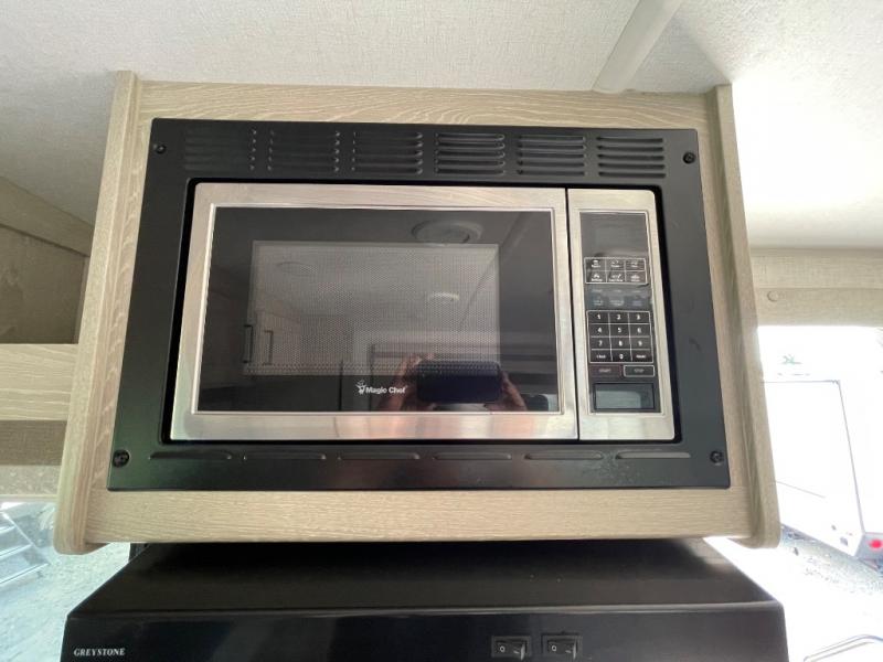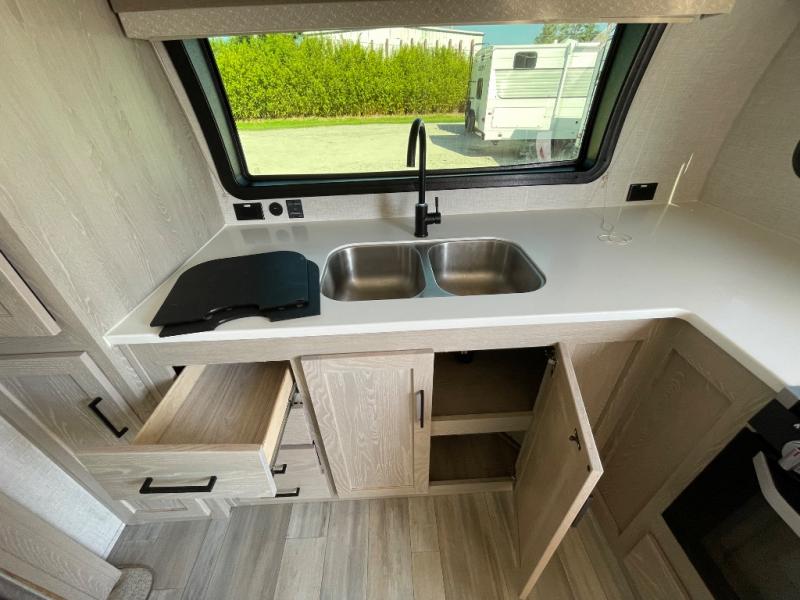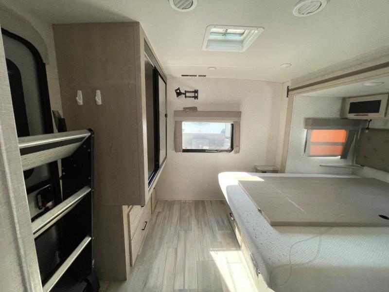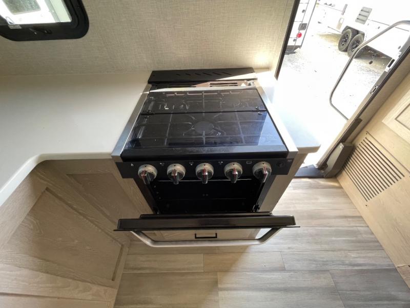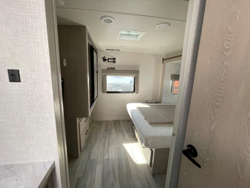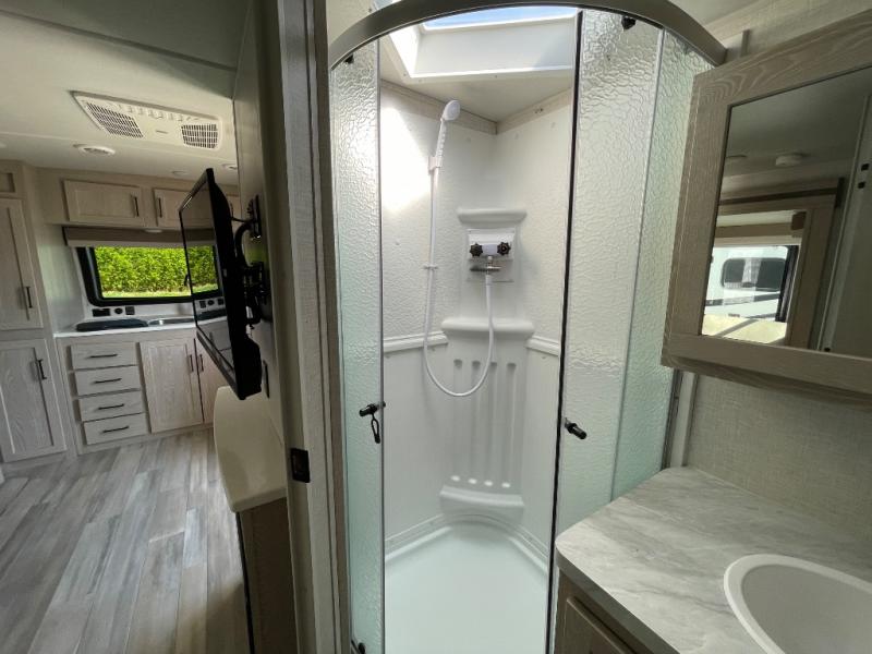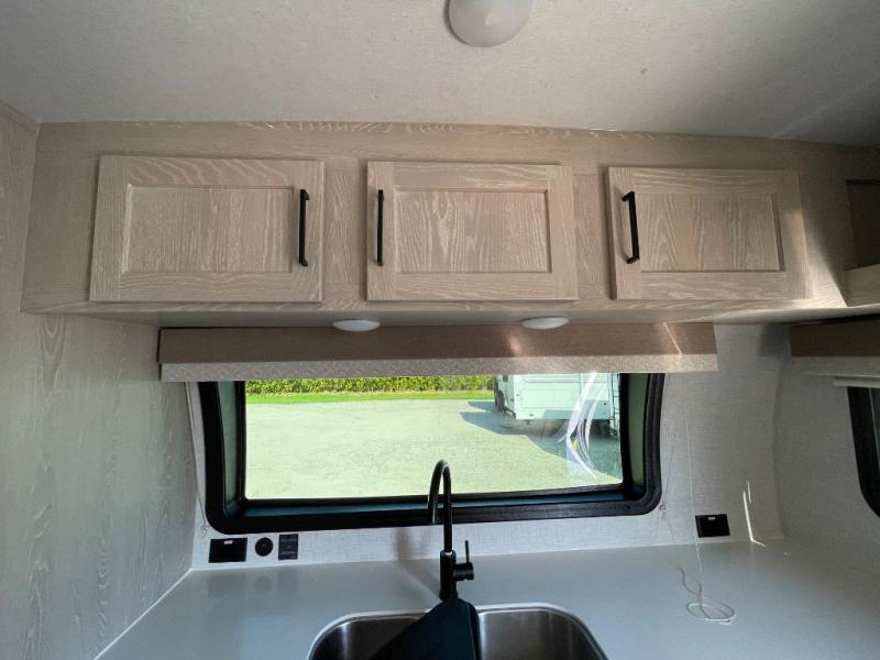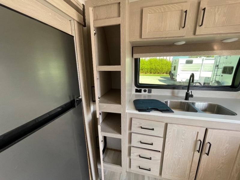 Each Flagstaff Micro Lite travel trailer by Forest River features laminated fiberglass sidewalls, sleek tinted frameless windows, and Azdel composite panels for added strength and support. You can easily tow these travel trailers with an SUV since they are so lightweight, and there is a power tongue jack for quick and easy set up. Some of the convenient amenities you will enjoy are the Teton All-In-One WiFi booster/LTE prep and antenna, the double battery boxes, Key-Alike locks, plus a Maxxair fan with a cover to keep the fresh air moving in your RV. You will love the modern look of the Newport Ash or Autumn Wood cabinetry, plus there are solid wood cabinet doors, solid surface kitchen countertops, and a Showermiser water saving system in the bathroom. Choose a Flagstaff Micro Lite travel trailer and you won't be disappointed!