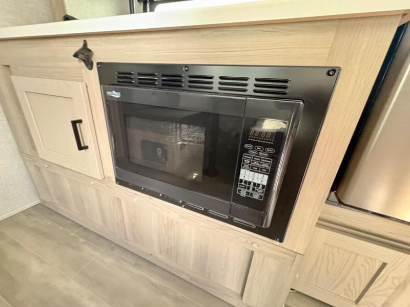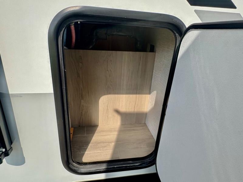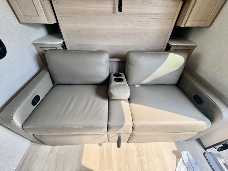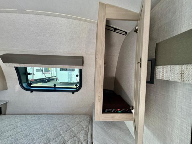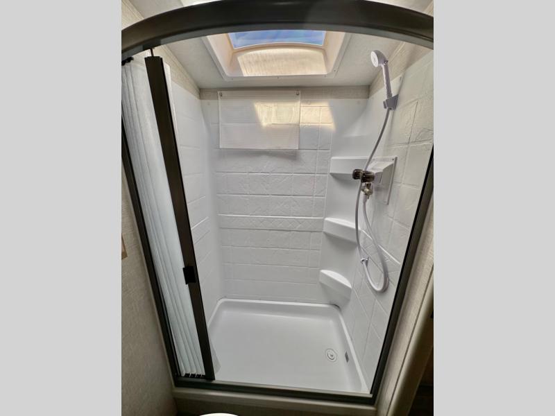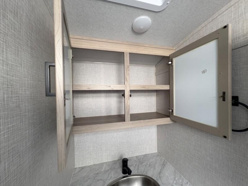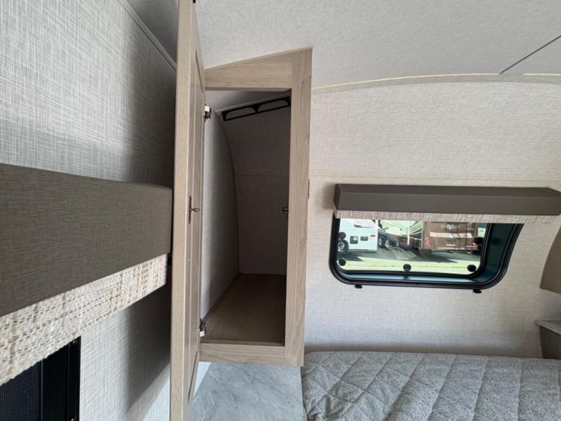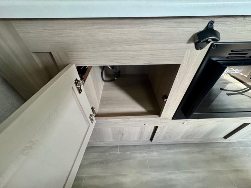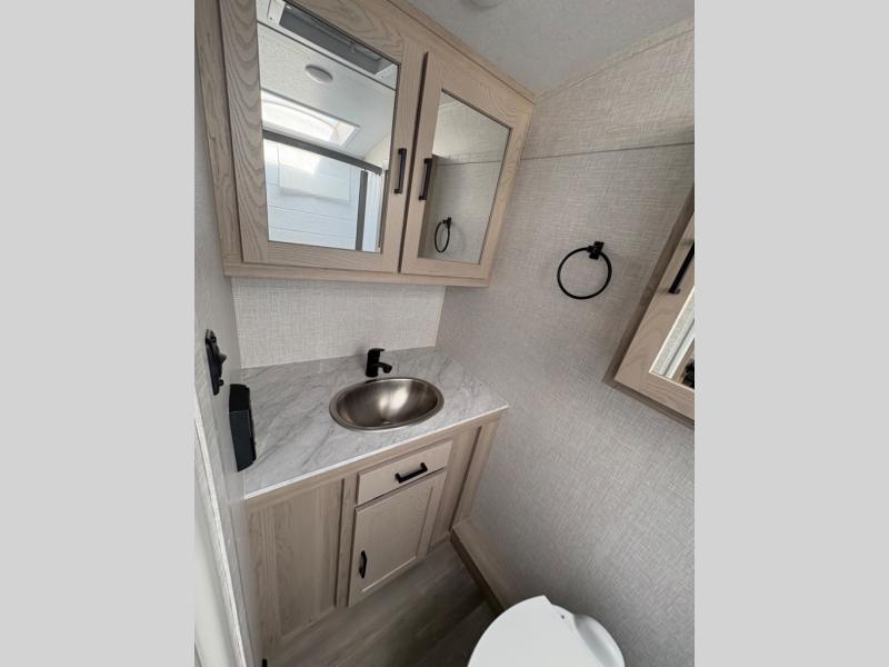 Camp with your favorite person in this trailer with the versatile Murphy bed/sofa combo up front giving you both a living area and a bedroom when you so choose. If you need sleeping space for one more, the dinette will provide that once easily setup. The large window gives you great views while dining or playing games, and the front windshield gives you more views. There is extra floor space in this trailer with the kitchen slide out that offers full amenities plus a sink to keep everything clean. And the full-length rear bathroom offers a spacious area to change your clothes in privacy and get cleaned up in the large shower.