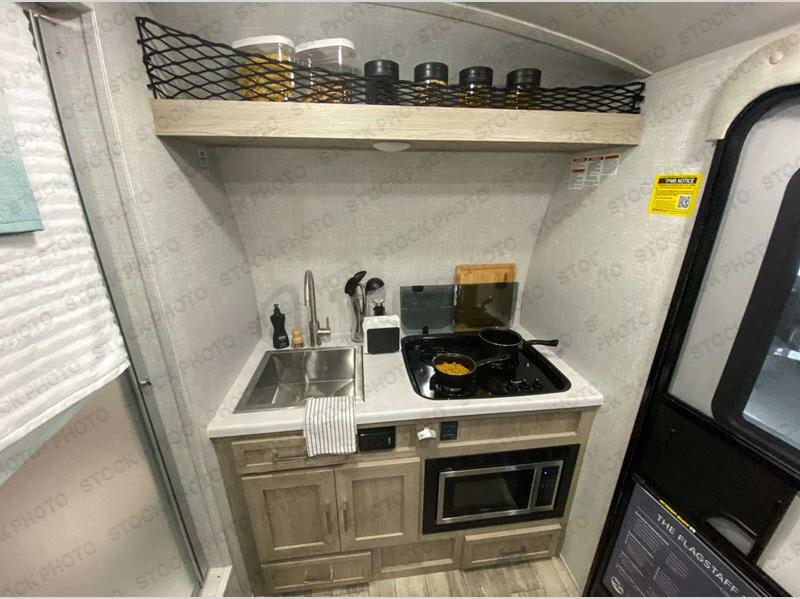 With any Flagstaff E-Pro travel trailer or toy hauler by Forest River, you will experience lightweight towing, style and features that will meet your needs, plus amenities that give you more than you expected! Built with interior and exterior Azdel construction, tongue and grove plywood flooring, and a vacuum laminated roof and walls, plus torsion axle, Rubber-Ryde suspension, and a tire pressure monitoring system for safety while traveling. And the 190-watt roof mount solar panel with 1,000-watt inverter will allow you to stay off-grid if you like. The interior offers a comfortable environment with the choice to use the air conditioner or furnace, and an AM/FM stereo with Bluetooth and USB will allow you to listen to your favorite tunes and keep your cell phone charged. Make your selection today!
