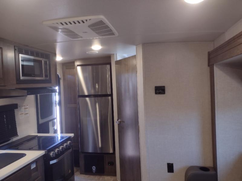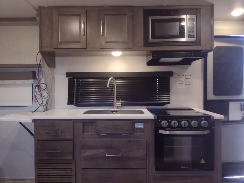 Each Flagstaff Micro Lite travel trailer by Forest River features laminated fiberglass sidewalls, sleek tinted frameless windows, and Azdel composite panels for added strength and support. You can easily tow these travel trailers with an SUV since they are so lightweight, and there is a power tongue jack for quick and easy set up. Some of the convenient amenities you will enjoy are the Teton All-In-One WiFi booster/LTE prep and antenna, the double battery boxes, Key-Alike locks, plus a Maxxair fan with a cover to keep the fresh air moving in your RV. You will love the modern look of the Newport Ash or Autumn Wood cabinetry, plus there are solid wood cabinet doors, solid surface kitchen countertops, and a Showermiser water saving system in the bathroom. Choose a Flagstaff Micro Lite travel trailer and you won't be disappointed!