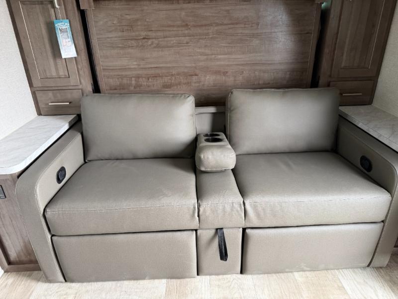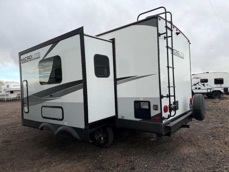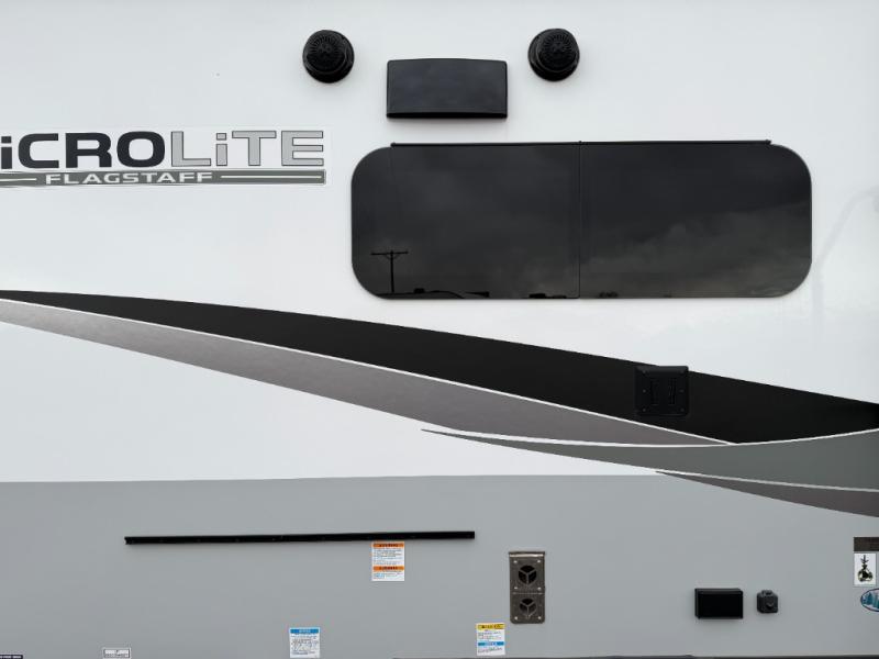 Pack your bags and get ready for your next camping trip with this Flagstaff Micro Lite travel trailer. You will enjoy the space the single slide provides, and within the slide is a U-shaped dinette where you can enjoy your meals. Fold out the Murphy bed each night for a good night's rest, and in the morning you can fold it away and enjoy a cup of coffee on the sofa. This unit features a kitchen with a three-burner cooktop and a microwave, and you'll appreciate a pantry for snacks. Bring along the extra lawn chairs in the pass-through storage, and there is also an exterior storage for your luggage or tackle boxes