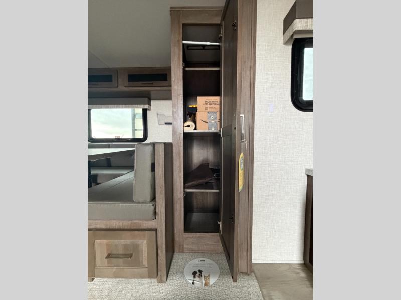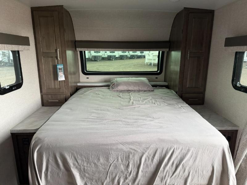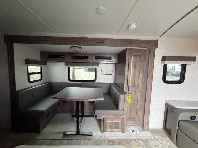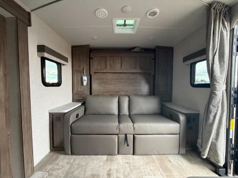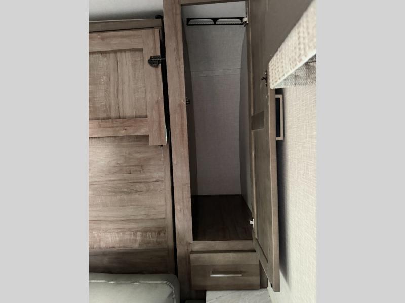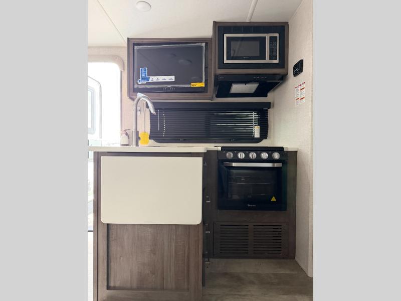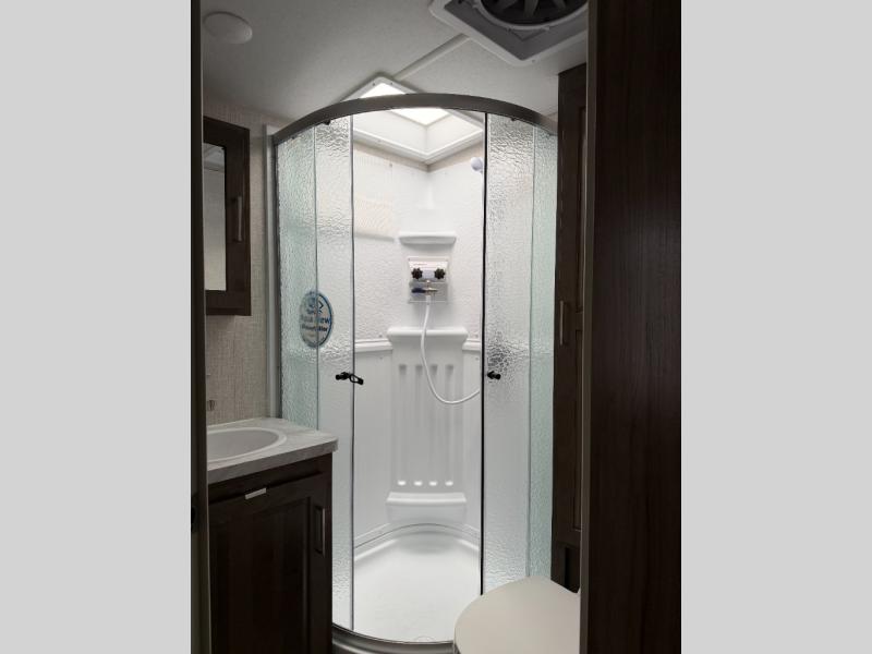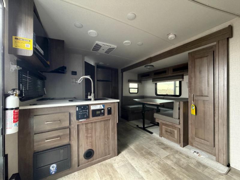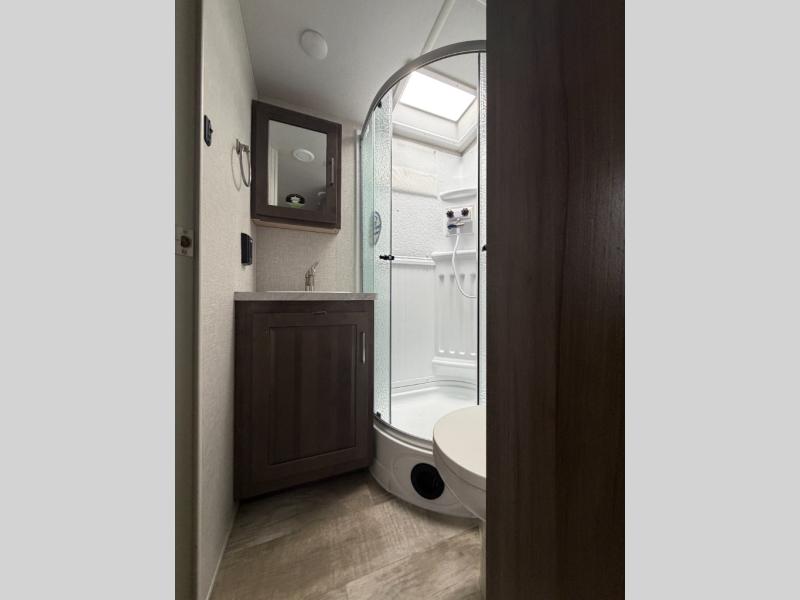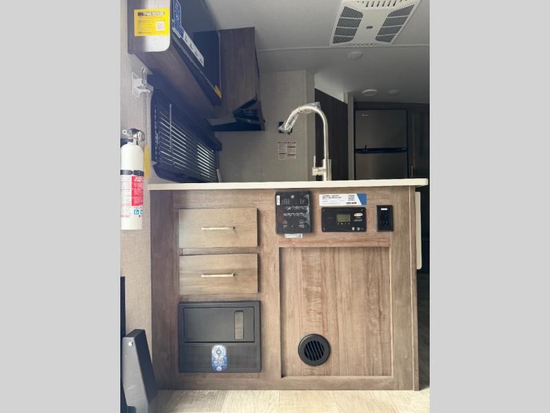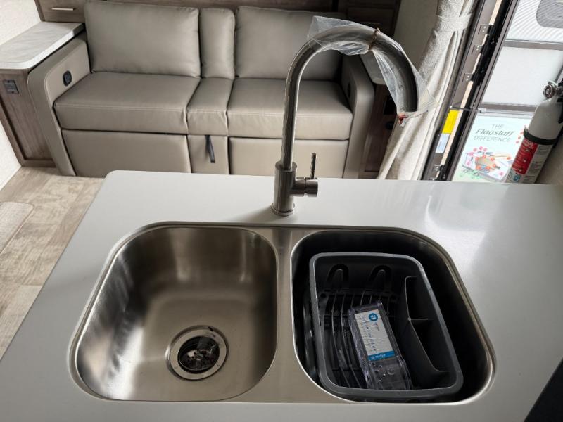 Each Flagstaff Micro Lite travel trailer by Forest River features laminated fiberglass sidewalls, sleek tinted frameless windows, and Azdel composite panels for added strength and support. You can easily tow these travel trailers with an SUV since they are so lightweight, and there is a power tongue jack for quick and easy set up. Some of the convenient amenities you will enjoy are the Teton All-In-One WiFi booster/LTE prep and antenna, the double battery boxes, Key-Alike locks, plus a Maxxair fan with a cover to keep the fresh air moving in your RV. You will love the modern look of the Newport Ash or Autumn Wood cabinetry, plus there are solid wood cabinet doors, solid surface kitchen countertops, and a Showermiser water saving system in the bathroom. Choose a Flagstaff Micro Lite travel trailer and you won't be disappointed!