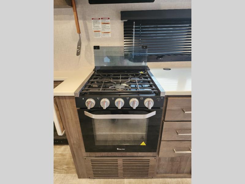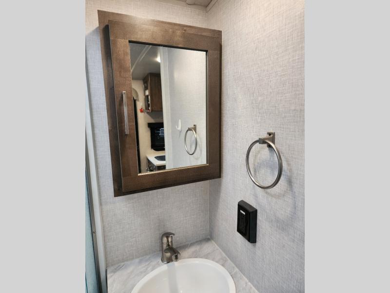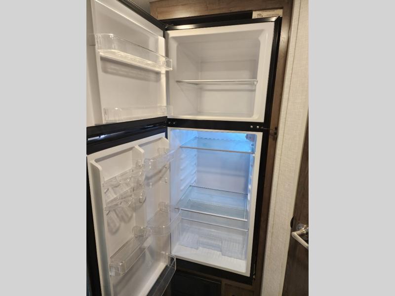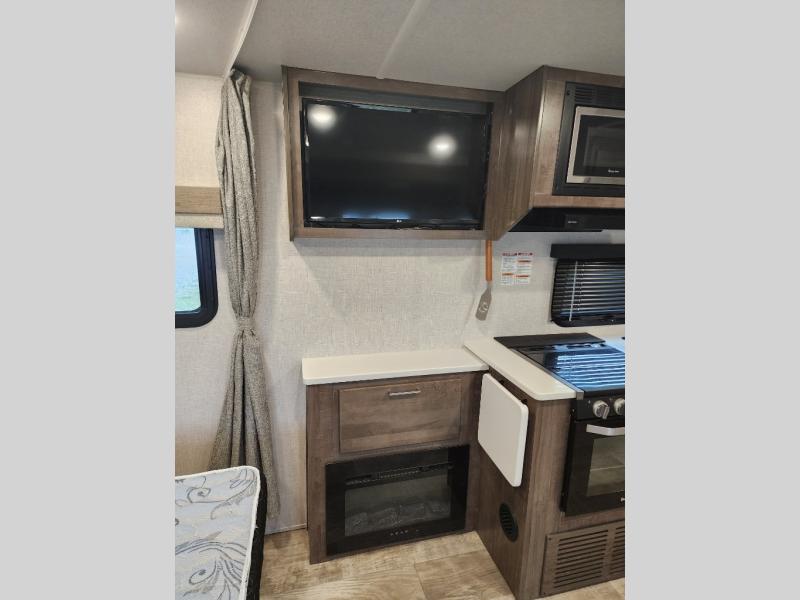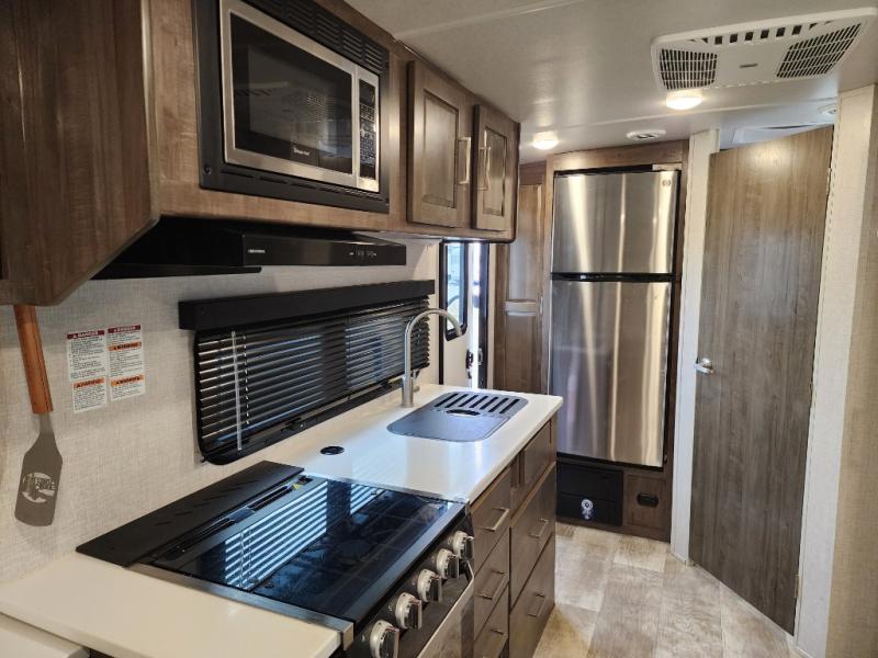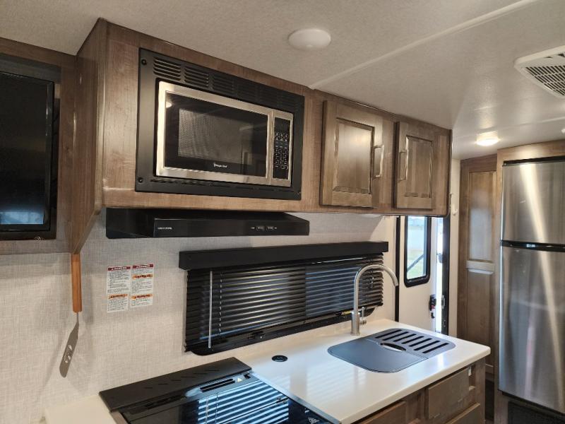 Each Flagstaff Micro Lite travel trailer by Forest River features laminated fiberglass sidewalls, sleek tinted frameless windows, and Azdel composite panels for added strength and support. You can easily tow these travel trailers with an SUV since they are so lightweight, and there is a power tongue jack for quick and easy set up. Some of the convenient amenities you will enjoy are the Teton All-In-One WiFi booster/LTE prep and antenna, the double battery boxes, Key-Alike locks, plus a Maxxair fan with a cover to keep the fresh air moving in your RV. You will love the modern look of the Newport Ash or Autumn Wood cabinetry, plus there are solid wood cabinet doors, solid surface kitchen countertops, and a Showermiser water saving system in the bathroom. Choose a Flagstaff Micro Lite travel trailer and you won't be disappointed!
