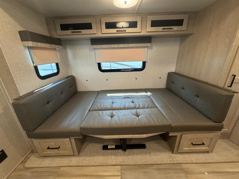Large Slide-Out Dinette: The spacious U-shaped dinette offers room for meals, board games, and extra sleeping space, all within a deep slide-out that opens up the floorplan beautifully.