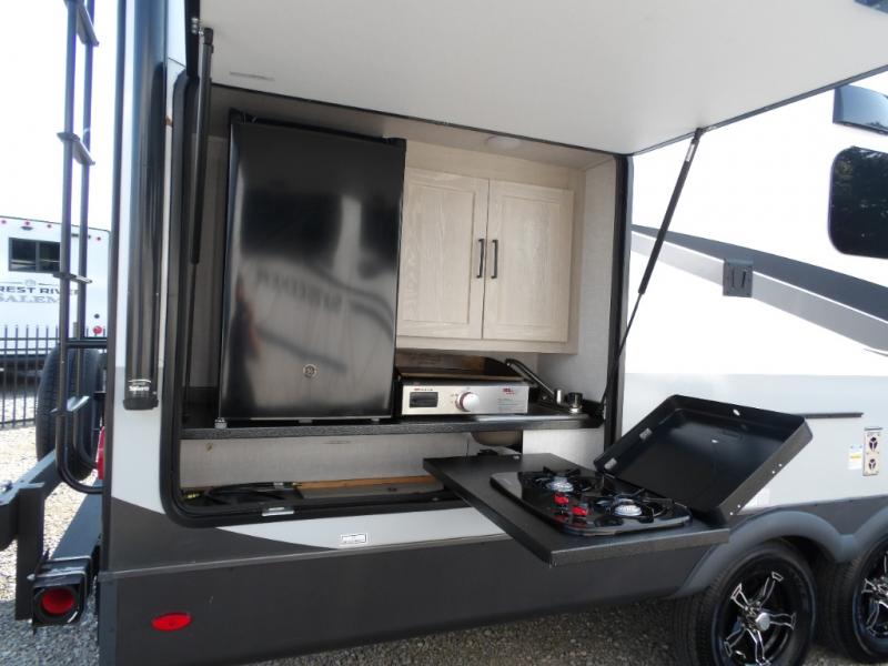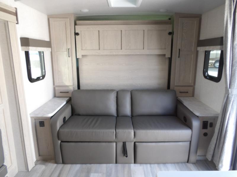 Are you ready to camp at your leisure? If so, then this Flagstaff Micro Lite travel trailer is ideal for you! There is sleeping space for four people in this unit, so you can camp with your kids or even an overnight guest or two. The single slide opens up the floor space so that you won't feel cramped. You'll enjoy a sofa in this model that conveniently converts into a Murphy bed for a good night's rest. This trailer features a kitchen with a three-burner cooktop, a countertop extension, and a double sink which makes clean-up a breeze. Enjoy the evening air when you cook outdoors using the outside kitchen that includes a two-burner cooktop, a sink, and a refrigerator.