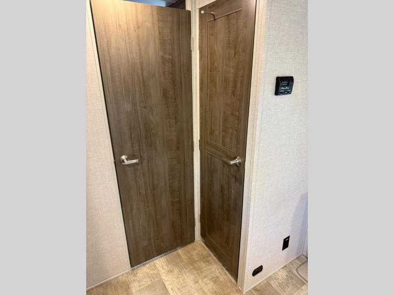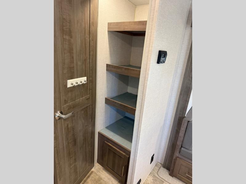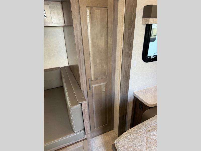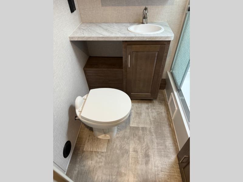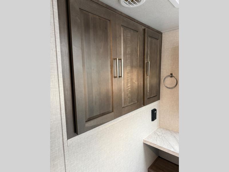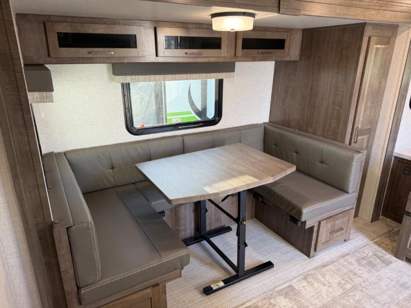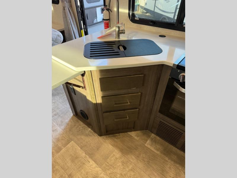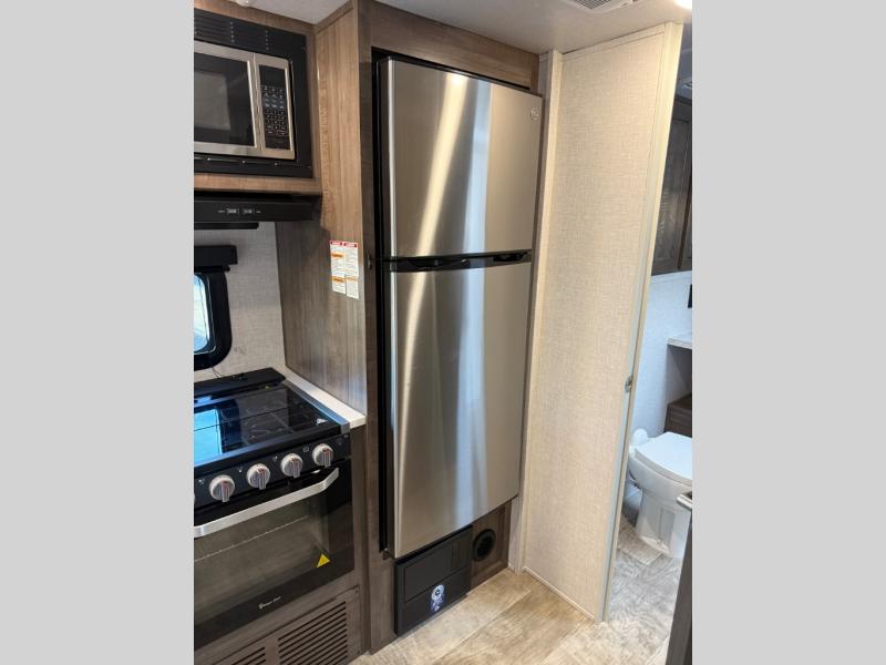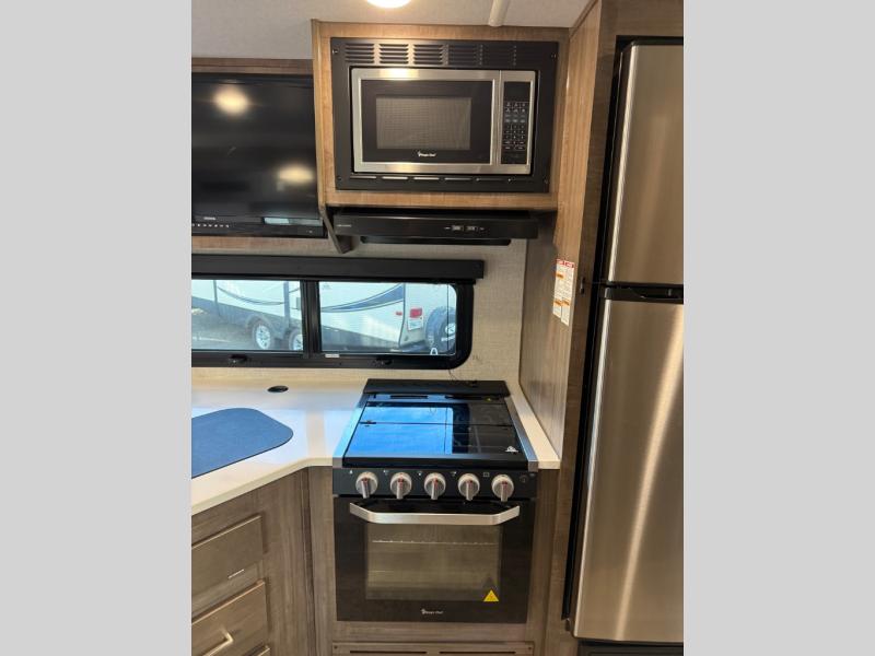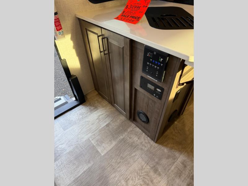 Each Flagstaff Micro Lite travel trailer by Forest River features laminated fiberglass sidewalls, sleek tinted frameless windows, and Azdel composite panels for added strength and support. You can easily tow these travel trailers with an SUV since they are so lightweight, and there is a power tongue jack for quick and easy set up. Some of the convenient amenities you will enjoy are the Teton All-In-One WiFi booster/LTE prep and antenna, the double battery boxes, Key-Alike locks, plus a Maxxair fan with a cover to keep the fresh air moving in your RV. You will love the modern look of the Newport Ash or Autumn Wood cabinetry, plus there are solid wood cabinet doors, solid surface kitchen countertops, and a Showermiser water saving system in the bathroom. Choose a Flagstaff Micro Lite travel trailer and you won't be disappointed!