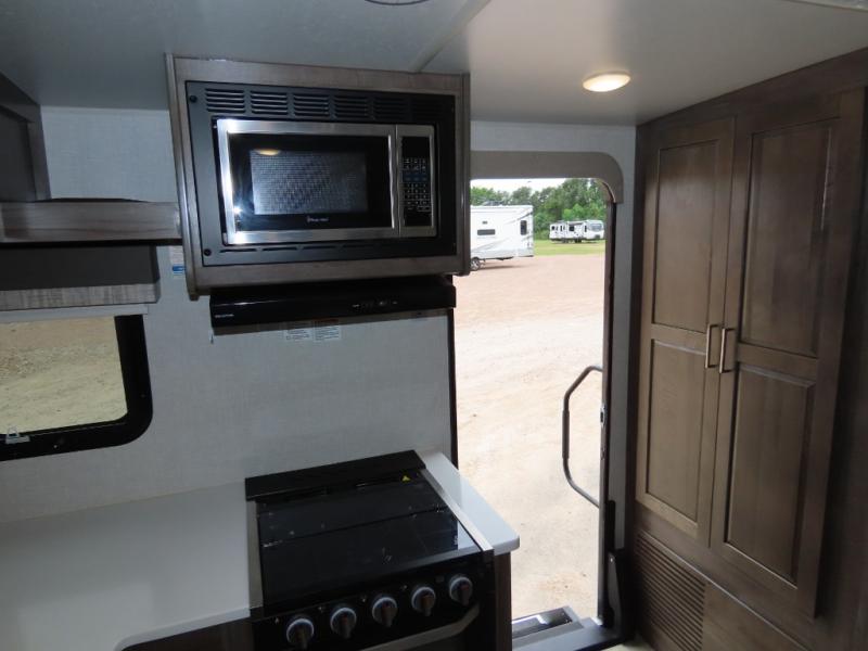 Each Flagstaff Micro Lite travel trailer by Forest River features laminated fiberglass sidewalls, sleek tinted frameless windows, and Azdel composite panels for added strength and support. You can easily tow these travel trailers with an SUV since they are so lightweight, and there is a power tongue jack for quick and easy set up. Some of the convenient amenities you will enjoy are the Teton All-In-One WiFi booster/LTE prep and antenna, the double battery boxes, Key-Alike locks, plus a Maxxair fan with a cover to keep the fresh air moving in your RV. You will love the modern look of the Newport Ash or Autumn Wood cabinetry, plus there are solid wood cabinet doors, solid surface kitchen countertops, and a Showermiser water saving system in the bathroom. Choose a Flagstaff Micro Lite travel trailer and you won't be disappointed!