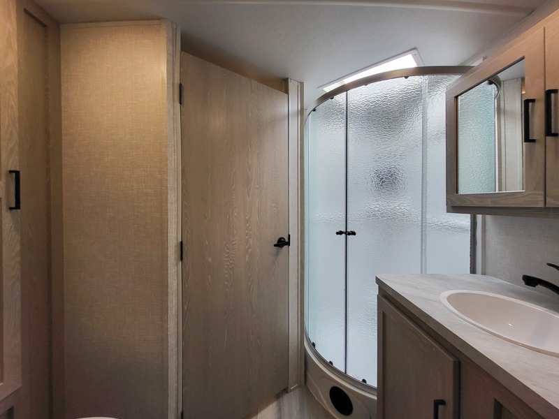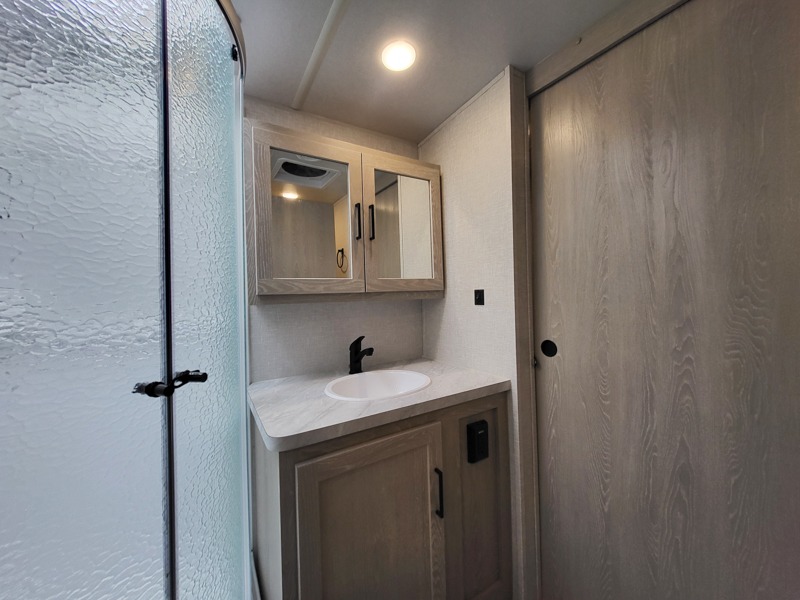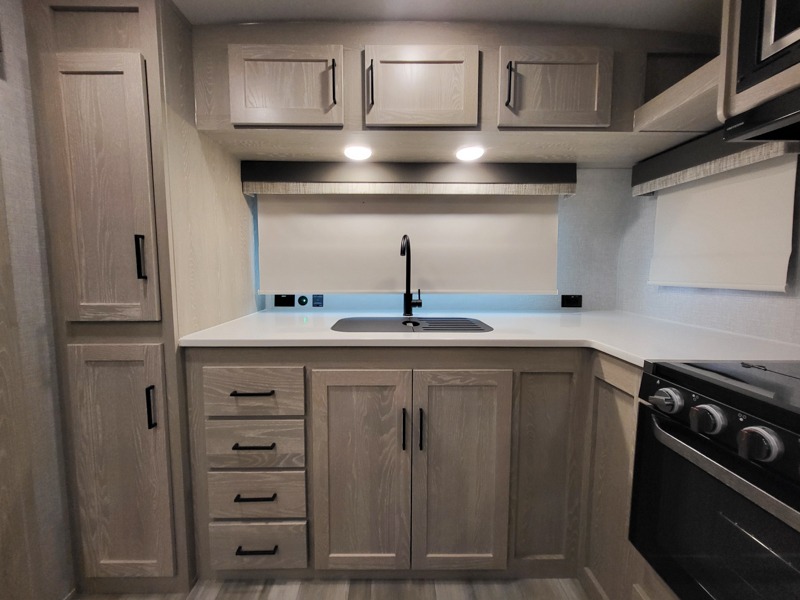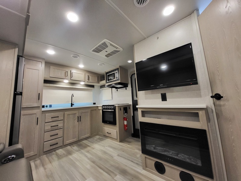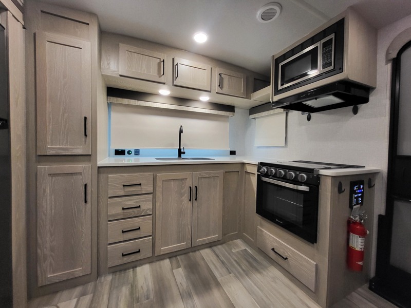 Each Flagstaff Micro Lite travel trailer by Forest River features laminated fiberglass sidewalls, sleek tinted frameless windows, and Azdel composite panels for added strength and support. You can easily tow these travel trailers with an SUV since they are so lightweight, and there is a power tongue jack for quick and easy set up. Some of the convenient amenities you will enjoy are the Teton All-In-One WiFi booster/LTE prep and antenna, the double battery boxes, Key-Alike locks, plus a Maxxair fan with a cover to keep the fresh air moving in your RV. You will love the modern look of the Newport Ash or Autumn Wood cabinetry, plus there are solid wood cabinet doors, solid surface kitchen countertops, and a Showermiser water saving system in the bathroom. Choose a Flagstaff Micro Lite travel trailer and you won't be disappointed!
