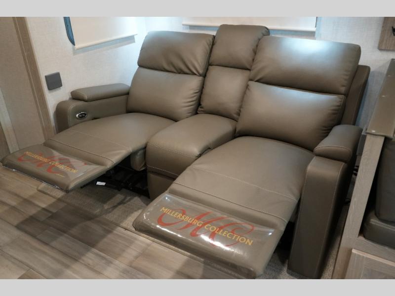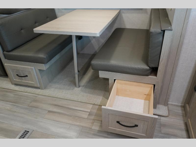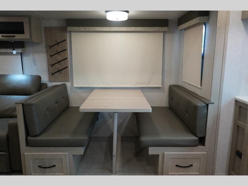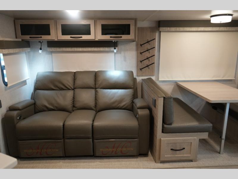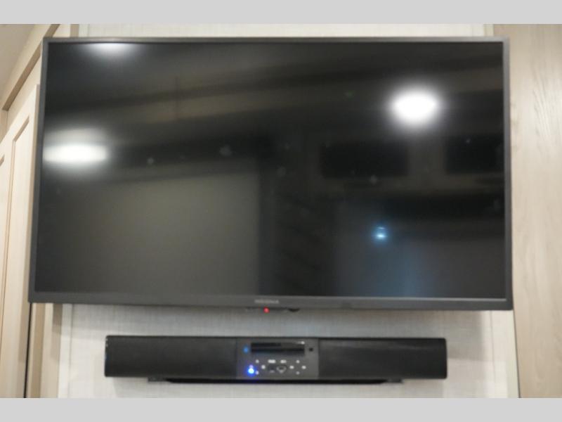 Relax in the 67" theater seating, enjoy meals at the booth dinette, and unwind with the LED TV and ambient fireplace after a long day outdoors. -