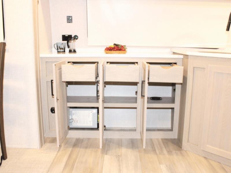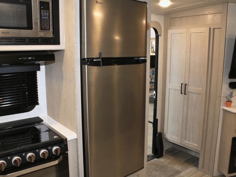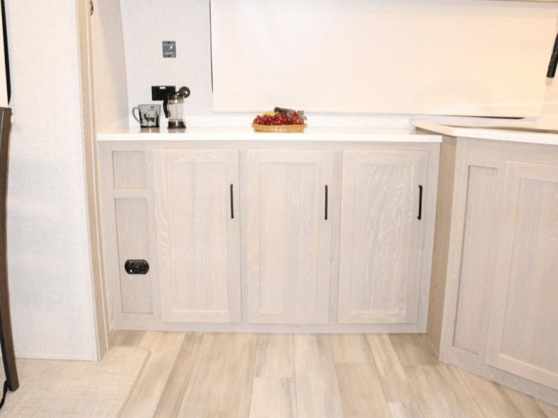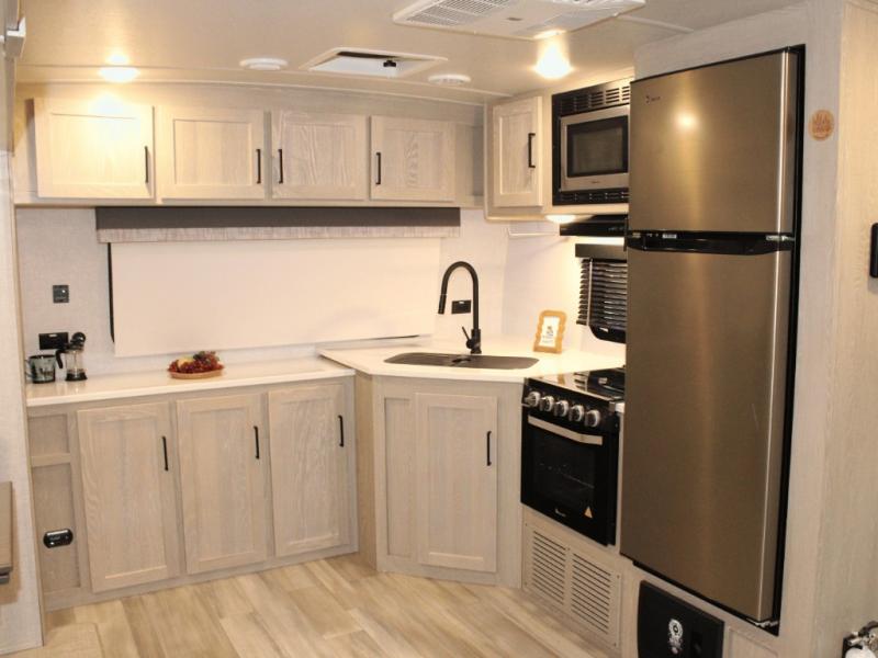 The front kitchen layout delivers generous countertop space, plentiful cabinetry, and all the appliances needed to cook, prep, and store meals with ease. Whether you're whipping up breakfast or serving dinner, this kitchen keeps everything within reach.