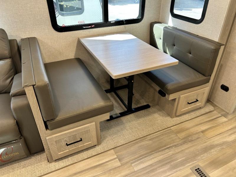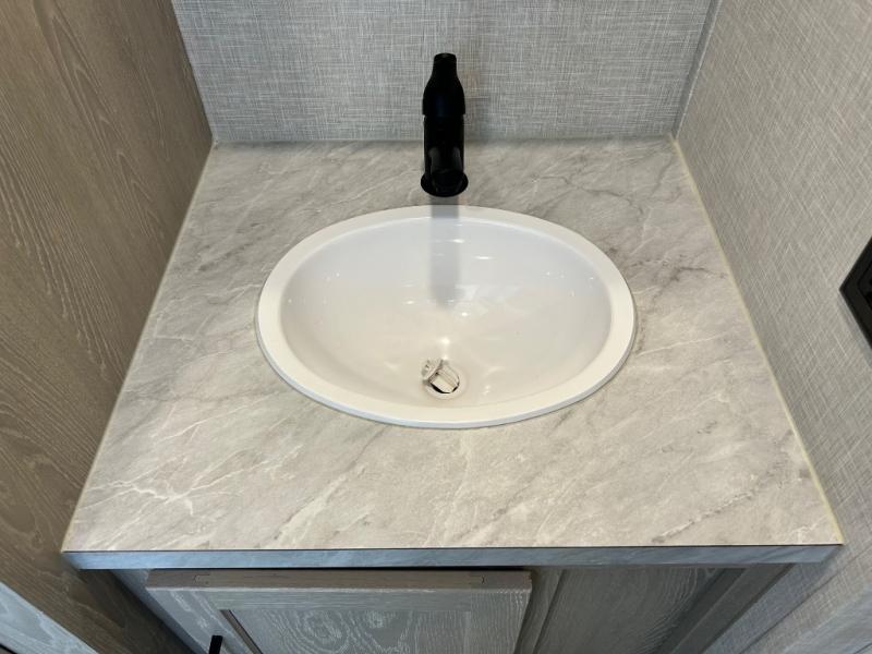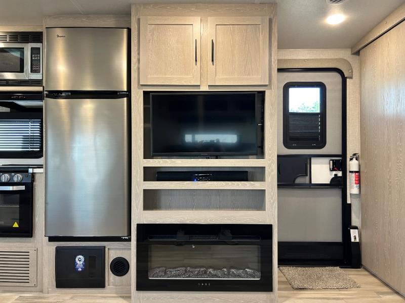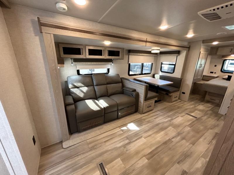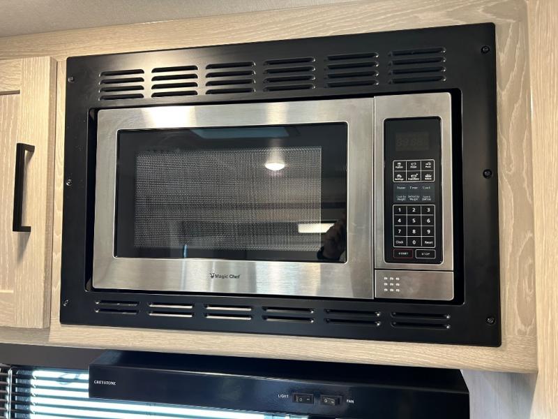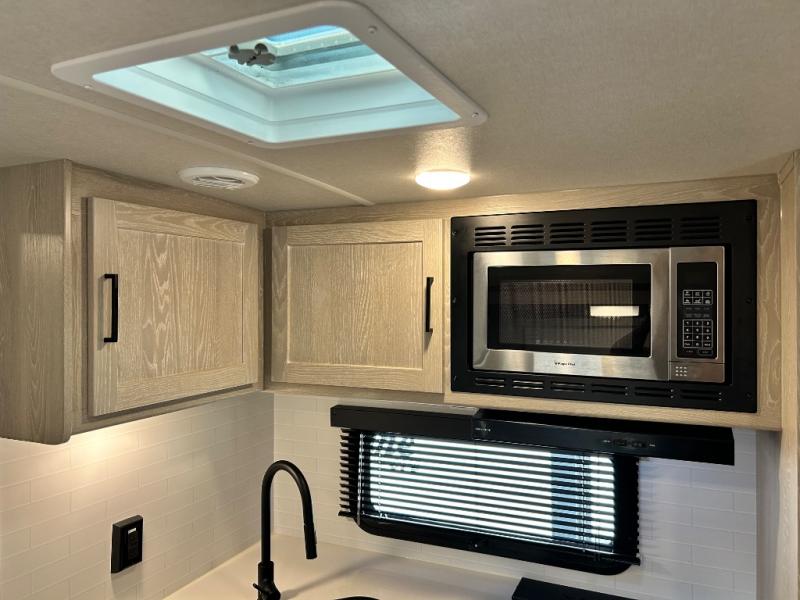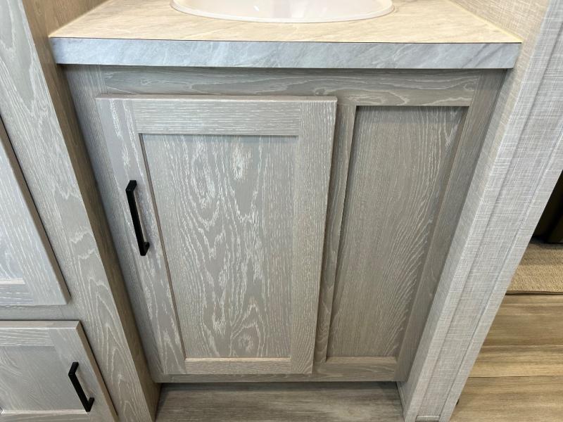 Enjoy inside comforts, and outside conveniences in this trailer. You can relax under the 21' awning which offers an outdoor living area protected from the elements, and a front drop frame pass-through storage allowing you to take camping chairs, tables, fishing poles and such. Enjoy privacy in the rear full bathroom with a space savings sliding door, and a spacious living and kitchen area thanks to the slide out with furniture that also doubles as sleeping space for your kids or guests. The cook will have full amenities to make meals, and when you are ready to sleep, head to the front bedroom with a queen bed and plenty of storage, and a slide out giving you more floor and storage space.