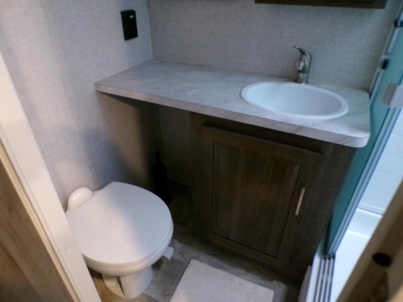 Whether you camp at state parks, National forests or on your friend's land, this trailer offers you plenty of floor space thanks to the two slide outs! As you enter the main entrance near the rear kitchen you can grab a drink from the refrigerator or a snack from the pantry and relax on the 60" theater seating or sit at the booth dinette. The LED TV offers entertainment while the fireplace will keep you cozy during the cooler months. Everyone will appreciate having a full bathroom to get cleaned up in, and the front bedroom gives you privacy and a queen bed slide, plus storage and the second exterior entry.