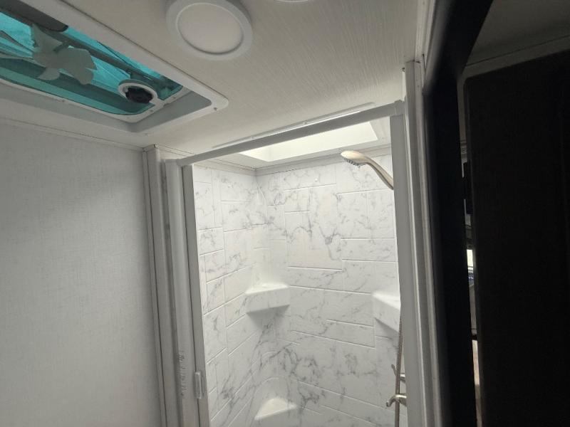 With any Forester Classic Class C gas motorhome by Forest River you will enjoy comfort at every turn! They offer a smooth ride with the EZ Ryde premium suspension system, and the ultra leather captain's seats will ensure comfort wherever you go. There are heated, enclosed holding tanks and valves plus block foam insulation to enjoy four-seasons camping, and the gel coat exterior fiberglass is slick and easy to keep clean. A keyless entry comes standard for your convenience, along with a color back-up camera and side view cameras for added safety when parking. The Forester Classic motorhomes also include a Maxx Air multi-speed power fan with a cover, a shower skylight, a cordless 12V charging plate, plus black out roller shades for privacy any time.
