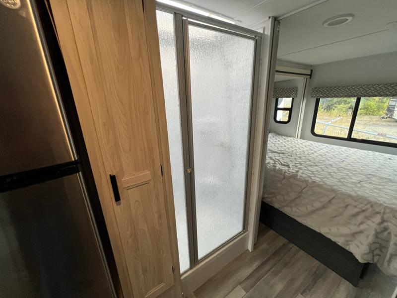 With any Forester Classic Class C gas motorhome by Forest River you will enjoy comfort at every turn! They offer a smooth ride with the EZ Ryde premium suspension system, and the ultra leather captain's seats will ensure comfort wherever you go. There are heated, enclosed holding tanks and valves plus block foam insulation to enjoy four-seasons camping, and the gel coat exterior fiberglass is slick and easy to keep clean. A keyless entry comes standard for your convenience, along with a color back-up camera and side view cameras for added safety when parking. The Forester Classic motorhomes also include a Maxx Air multi-speed power fan with a cover, a shower skylight, a cordless 12V charging plate, plus black out roller shades for privacy any time.