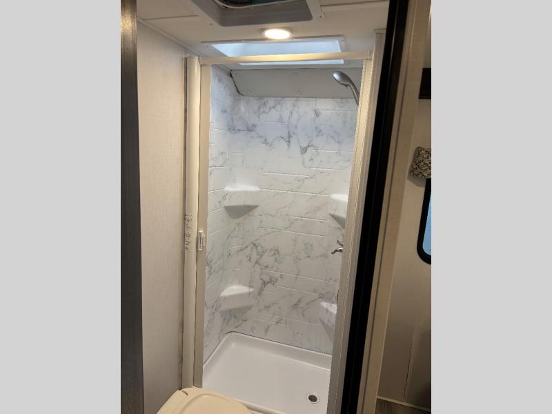 With any Forester LE Class C gas motorhome by Forest River, you will enjoy premier features such as the color back-up camera/side view cameras with a rear view mirror monitor, the Winegard Air 360+ digital antenna, and the 15,000 BTU ceiling ducted, ultra quiet roof air with a heat pump when traveling during the warmer months. The exterior includes aluminum framed laminated sidewalls, gel coat exterior fiberglass, a one-piece fiberglass front cap, and slide room toppers. Some of the interior top features are the Maxx Air multi-speed power fan with a cover in the kitchen, the overhead bunk ladder, the high pressure oxygen infused shower head, and the blackout roller shades for a good night's sleep. Make your selection today!